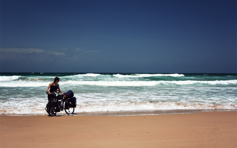 Then we walk down a narrow gap in the bushes and find ourselves staring out at a thin strip of golden sand that leads to the tumultuous landfall of the Tasman Sea, which we now face looking toward the east instead of the west. Kristen inches her bike down to the edge of the dark line that marks where the incoming waves will end, and within moments salt water washes over her tires and wheels. And that's it; our adventure has been reborn. For years I've wanted to cycle across Australia, and now that challenge is not only here, but I have the chance to attempt it with the person I care about more than anyone else riding right behind or right in front of me. We are Team Hawthorne, and you could live out the rest of your days without finding another pair of people quite as fortunate nor quite as awkwardly tan-lined as the two of us. Next stop: Perth!