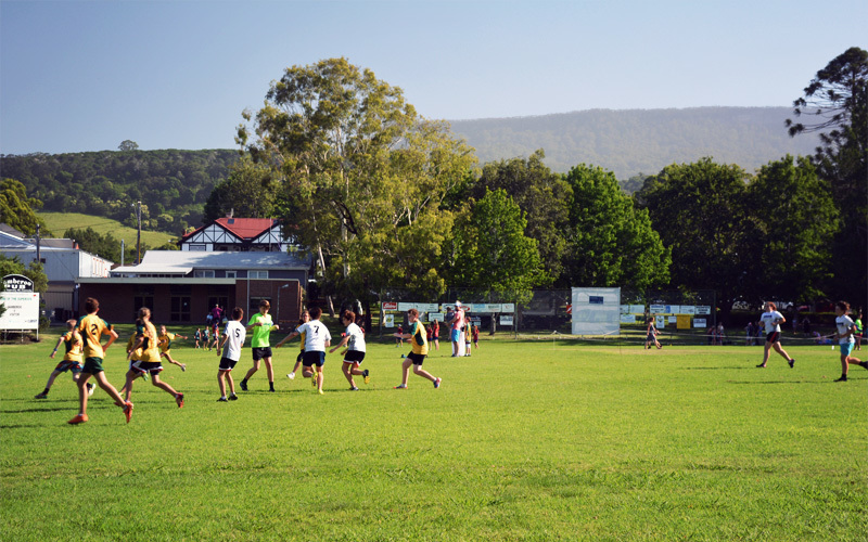 We head over to the town park to put together an early dinner. There we watch more than a hundred kids playing five-on-five touch rugby, all floppy haired and skinny limbed and wearing jerseys with the name of the town's grocery store printed in block letters across the front. Every mom, dad, brother, sister, and grandparent who watches — and there are at least 300 of them — waves their hand in front of their face and around their head more or less constantly to keep the flies at bay. Around the edges of the pitch, people walk their dogs, people walk themselves, and hotdogs and sausages sizzle on a big gas grill. There's the pop of tennis balls flying off racket faces, the repetitive encouragement of upbeat tennis coaches, and the piercing shriek of giant white cockatoos that pass overhead. It's warm and peaceful, the definition of pleasant. It makes me think that if you wanted to live in a small, quiet, friendly, attractive little town, you probably couldn't find an example more perfect or better-named than Jamberoo.