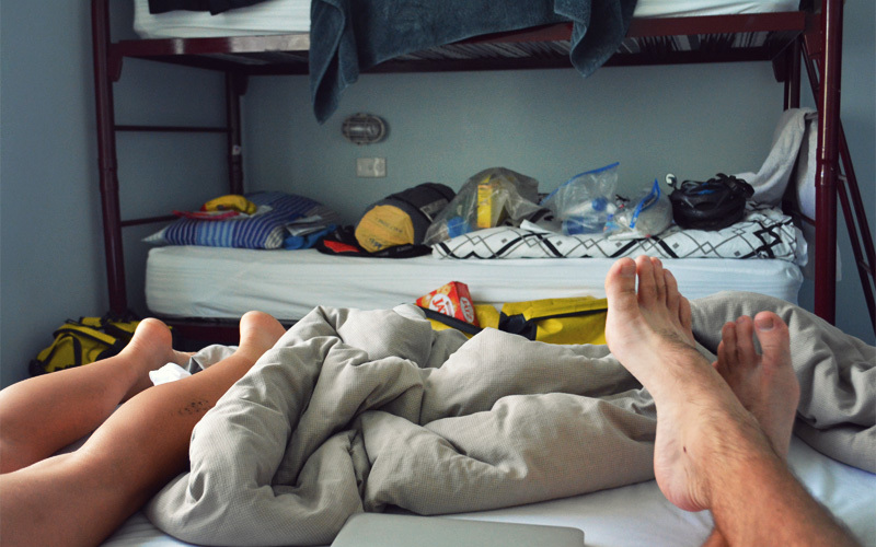 He's there when we come downstairs at 9:00 in the morning to use the showers, and he's there when we make lunch around noon. He's there when we get on the bikes and head over to a nearby shop to get Kristen's brake and derailleur cables adjusted, and he's there when we get back. He's there when we go to the grocery store in the evening, and there when we get back from that too. He's there at 10:00 p.m., with darkness all around, when I walk outside to bring the bikes inside for the night. I can even hear him down there when I finally shut down my computer half an hour past midnight, with the TV droning on despite the fact it should have stopped working hours ago because of intense overheating issues. Sometimes he's eating, sometimes he's drinking a beer, sometimes he's with another guy who seems to be his buddy, but always he's watching a documentary about global warming on MSNBC, a cricket game, or one of those shows about semi-interesting topics like how bridges are affected by earthquakes or how the airport in Hong Kong was built on a man-made island.