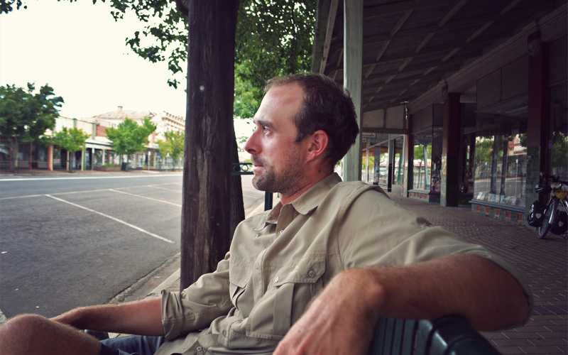 With the heat pushing past ninety and dozens of hills having exacted a price from our legs, we're both heading toward wasted by the time we roll into Casterton. But I fall into the loving arms of a steak and bacon pie, a cold bottle of Coca-Cola, and the most delicious eclair I've ever had the privilege of stuffing into my face hole, and that's all it takes to set the world right again. We pass the next five hours in the sheltered cool of the library, looking out on the town's main street. From this perch it becomes clear that there are few things in life more efficient than the lines in which humans travel to go from one air conditioned place to the next when it's sunny and 110 degrees outside.