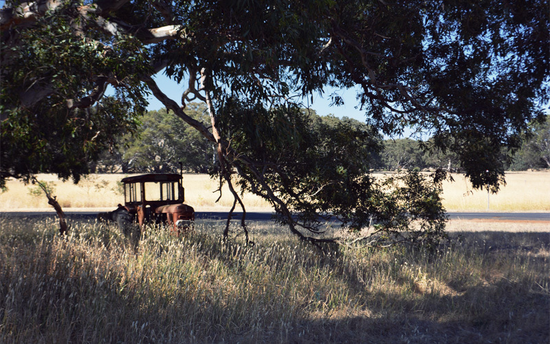 We order a pizza across the street after the library closes. A group of four skinny, floppy haired fifteen-year-olds in tank tops and sandals who look like they might blow away in a strong wind drink soda and eat candy bars and talk about nothing. At one point a car pulls up, parks next to them, and they talk to the older teenagers inside who are smoking through rolled-down windows. But although the younger ones know the older kids inside, they just aren't in the same place yet. The young ones are still friendly to the people who work behind the counter at the pizza place, they hold the door open when a woman approaches with her hands full, and the thing they're most concerned about isn't beer or weed or guns but the status of their chill cheese fries, and "can we get a fork with those, please?" There are some towns we go through where I get this feeling that I'm watching the future wife beaters and drug dealers of Australia walk or drive past, but there's so little of that in Casterton. We couldn't have asked for a better place to pass one of the summer's hottest days.