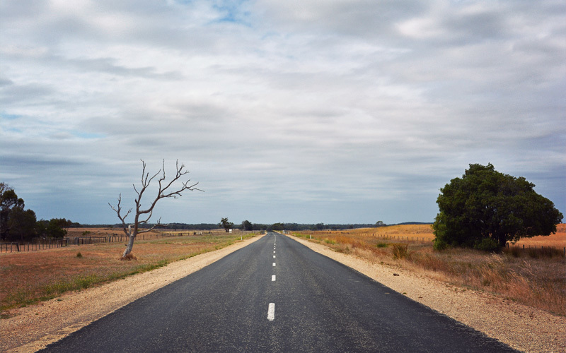 It's easy to tell the locals from the people passing through on holiday. The locals all wave with a subtle shift of the wrist or the raise of a few fingers off the steering wheel, while the tourists give out these floppy wristed, forearm-shaking kind of waves that seem kind of embarrassing for everyone involved. Or maybe they're mocking us; it's hard to tell sometimes. Whatever the reason, it's a distraction from the blue gum trees that parallel the road mile after mile. They're planted in straight lines by logging companies, and the lines run very close together, because it forces the trees to grow tall and narrow instead of branching out low and wide like they would on their own. There must be more profit in this method, because the artificial forests never break from the pattern.