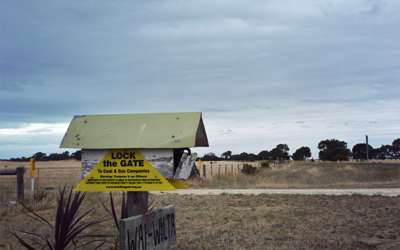 We ride past a mother kangaroo and her two big-eared little ones chewing on the yellow grass on the road side of the fence line, and they watch us come and go with no concern, their mouths moving side to side and their stubby arms tucked up against their chests all the while. When we look in our mirrors we find cloudless blue skies due south, but straight ahead it's all gray and white, which leaves the morning shadowless and dull.