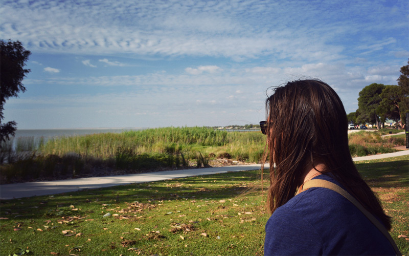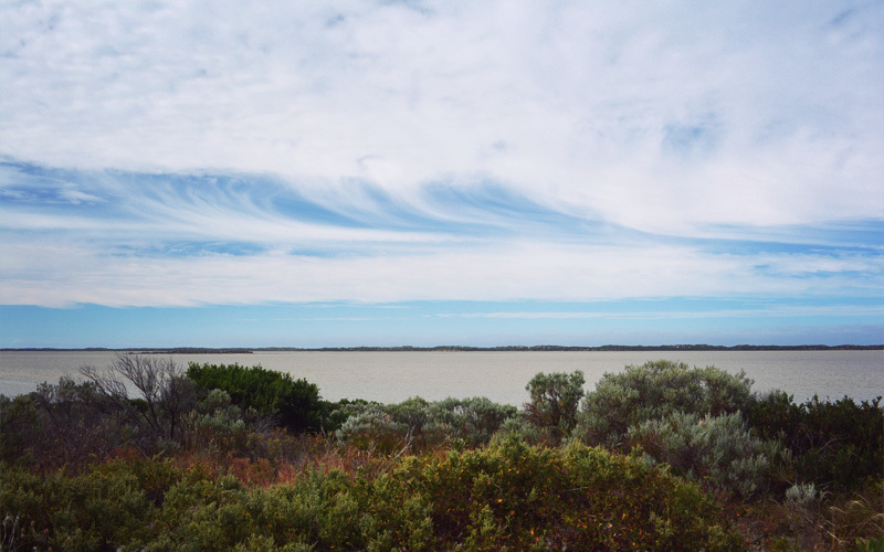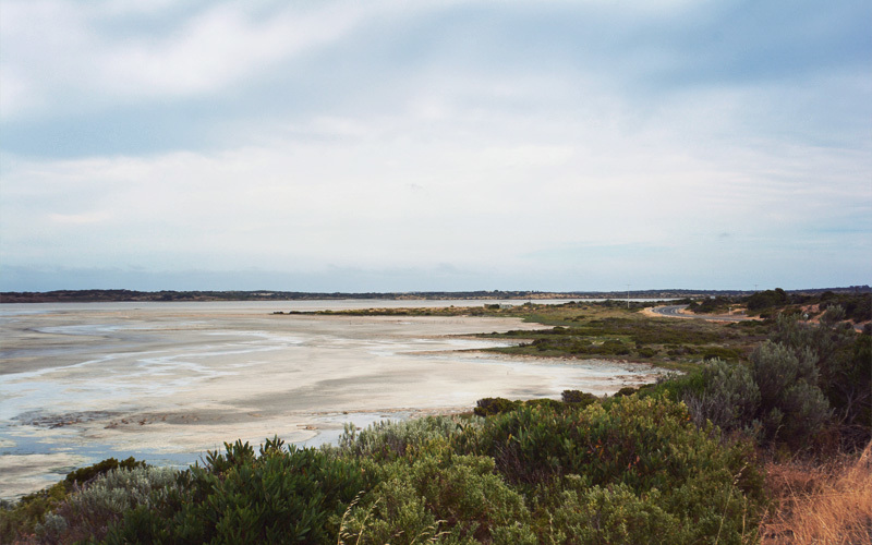 In the evening we walk back into town for fish and chips, and afterward head over to the park by the lake. We lay down in the spongy, well-trimmed grass and drink a few beers in the shade of tall gum trees that sway in the southeast wind that hasn't stopped for three days. We feel relaxed and happy, and proud of what we accomplished during the long series of days that brought us here. But our legs and shoulders and asses have been pushing us for time off the bike for awhile now, and we agree that this is the time and place to take a day off and let them rest up.