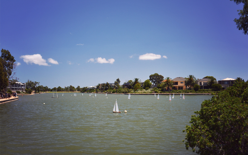 And then we reach some dividing line where the land gets cheaper. All of a sudden we're in the middle of a master-planned community of office parks, university branch campuses, modern tract housing, rectangular condo buildings completely devoid of style, and of course shopping centers, all of which exist around artificial lakes where nerdy old white men race radio-controlled sailboats and try to catch stocked fish on this placid summer day in the suburbs. Yet somehow, on a beautiful weekend where you'd expect to see people out walking and shopping and running errands, the sidewalks are empty and everyone shuttles from place to place in an air conditioned sedan or SUV. There's no community; it's just a collection of people who happen to live in the same general area.