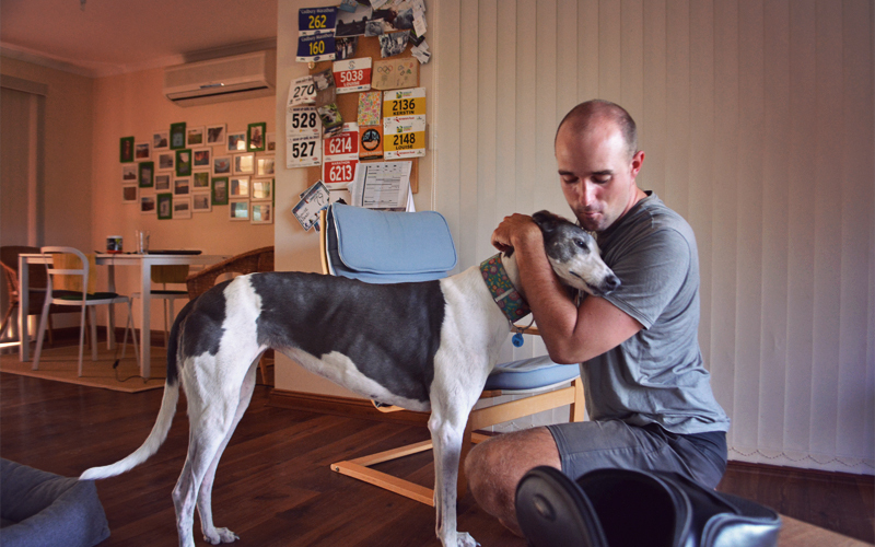 When the mozzies become too much we head inside to the living room. We watch the Australian Open on TV, drink tea and eat ginger-flavored biscuits, hear the crickets chirping outside through open windows, and smile at the lazy old greyhound who wedges her narrow body into a square-shaped dog bed that leaves the ends of her long and skinny legs draped over the edges. It marks the end of a wonderful day spent with two wonderful people. With half a world separating us, the chance of meeting up with Louise and Kerstin for a third time at some point down the road on bicycles or any other kind of vehicle is admittedly small, but Kristen and I both go to bed hoping that the numbers are on our side.
