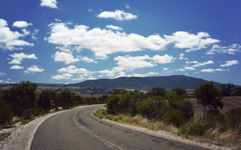 It feels like a different day as we roll out of Booleroo an hour and a half later. The gray of the morning is gone, and in its place the skies have turned into a mix of brilliant blues and pure whites. The flats are gone too, and instead it's gentle rolling hills. And against all odds, but with a feeling of relief that's not so far from ecstasy, the flies that hounded us all morning have disappeared. As we continue on, we move closer and closer toward Mount Remarkable. The name is technically accurate, but it's less like, "Holy shit! Look at that amazing mountain! Hold my hand, I think I might pass out from all the beauty or at least soil myself a little!" and more like, "That hill is taller than the short hills, and therefore I'm remarking that it's not the same."