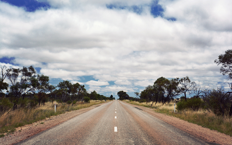 Beyond town it's wheat. Wheat to the left, wheat to the right, wheat in front of us, and soon wheat behind us as far as we can see. It's wheat extending away from the road in precise lines, idle machines that rip the wheat from the ground during harvest season, and open spaces of green where one day wheat will grow. We watch a mother cat and her three littlest ones stalk mice in the fields, look out at rusted shells of metal cattle troughs that haven't been used since the eighties, and that's about the extent of it. But we're now in the kind of empty country where cars and utes only pass us once every twenty or thirty minutes, and that's a trade-off we'll make every time.