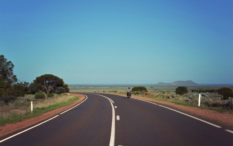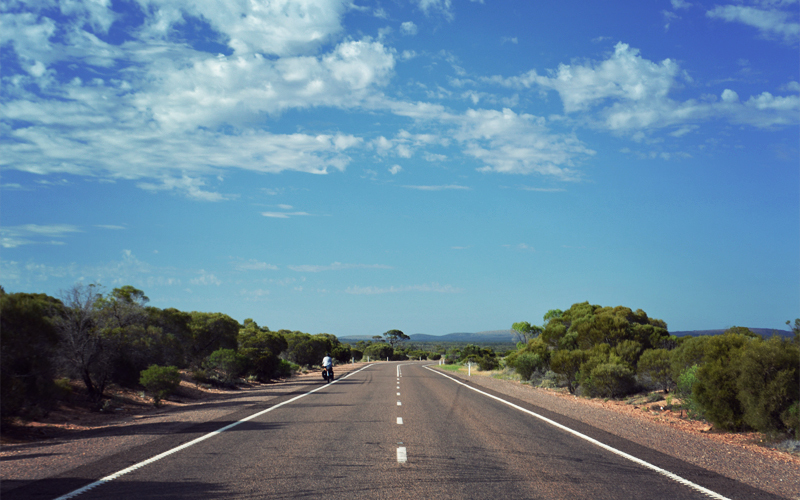 We head past trees and bushes, bushes and trees, and animals hidden away deep within them. It's terrain so flat and featureless that it takes more than fifteen miles for the low-lying sprawl of Whyalla to disappear from our rear view mirrors.