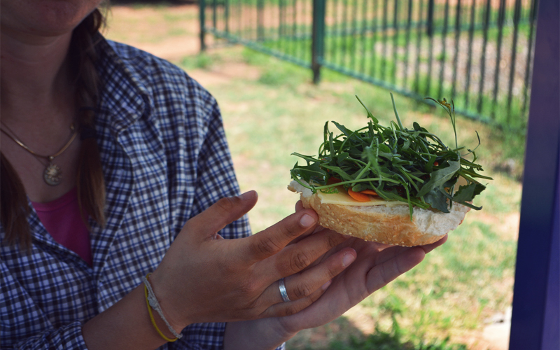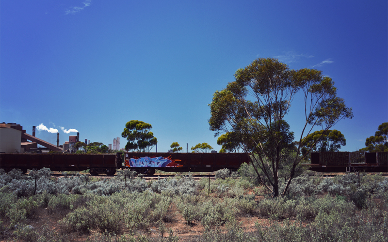 It's a night of half-sleep with the steady stream of massive trucks and the endless crinkling of the rain fly by wind that fades in strength but never disappears. The landscape stays the same when we continue on: short and skinny trees, bushes of green and blue-green, patches of orange-toned dirt and rocks, and not a building or water tanks or even a single sheep to be seen. There's no sign of who owns the land, if anything has ever been done to it, or if anything ever will. It means that all that's out here is the road, the pipeline, and the railroad line, all running parallel on the same narrow band of earth toward Whyalla.