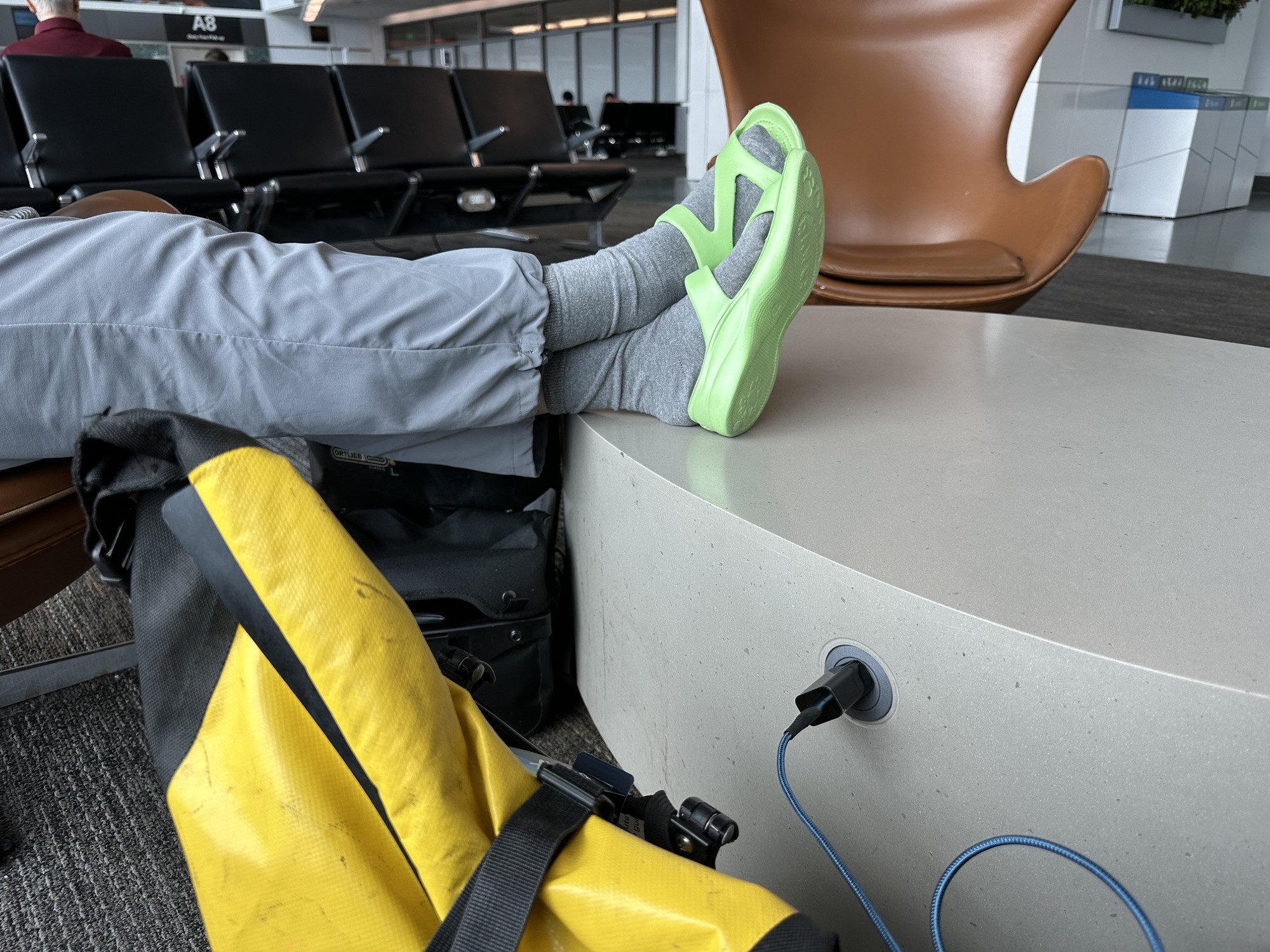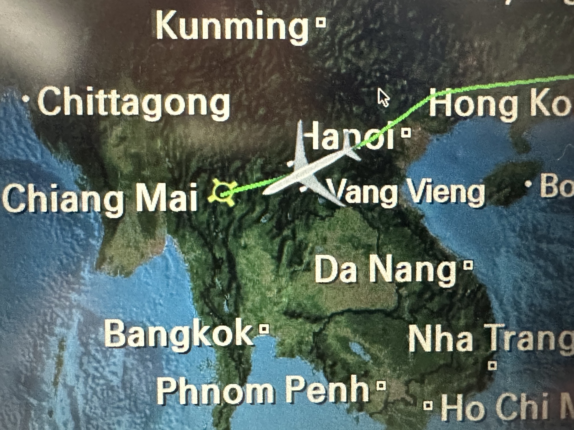 No, our flights from Portland to Chiang Mai could be described as tedious at best but actually I don't know who would give such high marks. Andrea and I both felt that it was more like we were barely able to endure the experience. The long segment of our three flights meant we were nearly 14 hours in the air. Endurance turned into something more like torture. I'm not kidding. For one thing the plane was beastly hot. It was 62 degrees below zero outside at 40,000 feet and all I wanted to do was open the window. The flight attendants never came by with water. In fact it seemed like the flight attendants had left the plane for hours at a time. I could go on about how bad our flights were but you don't want to hear more.