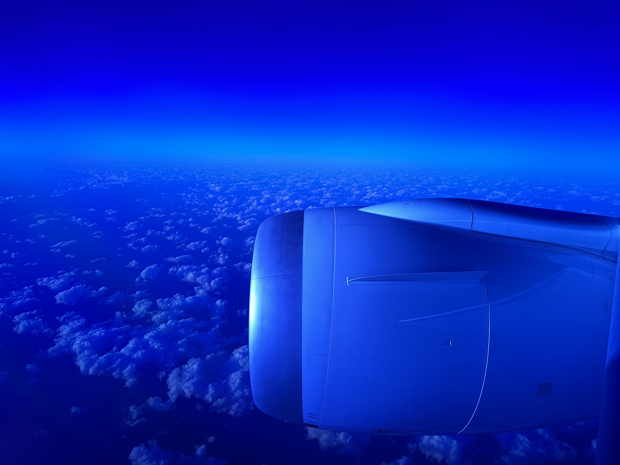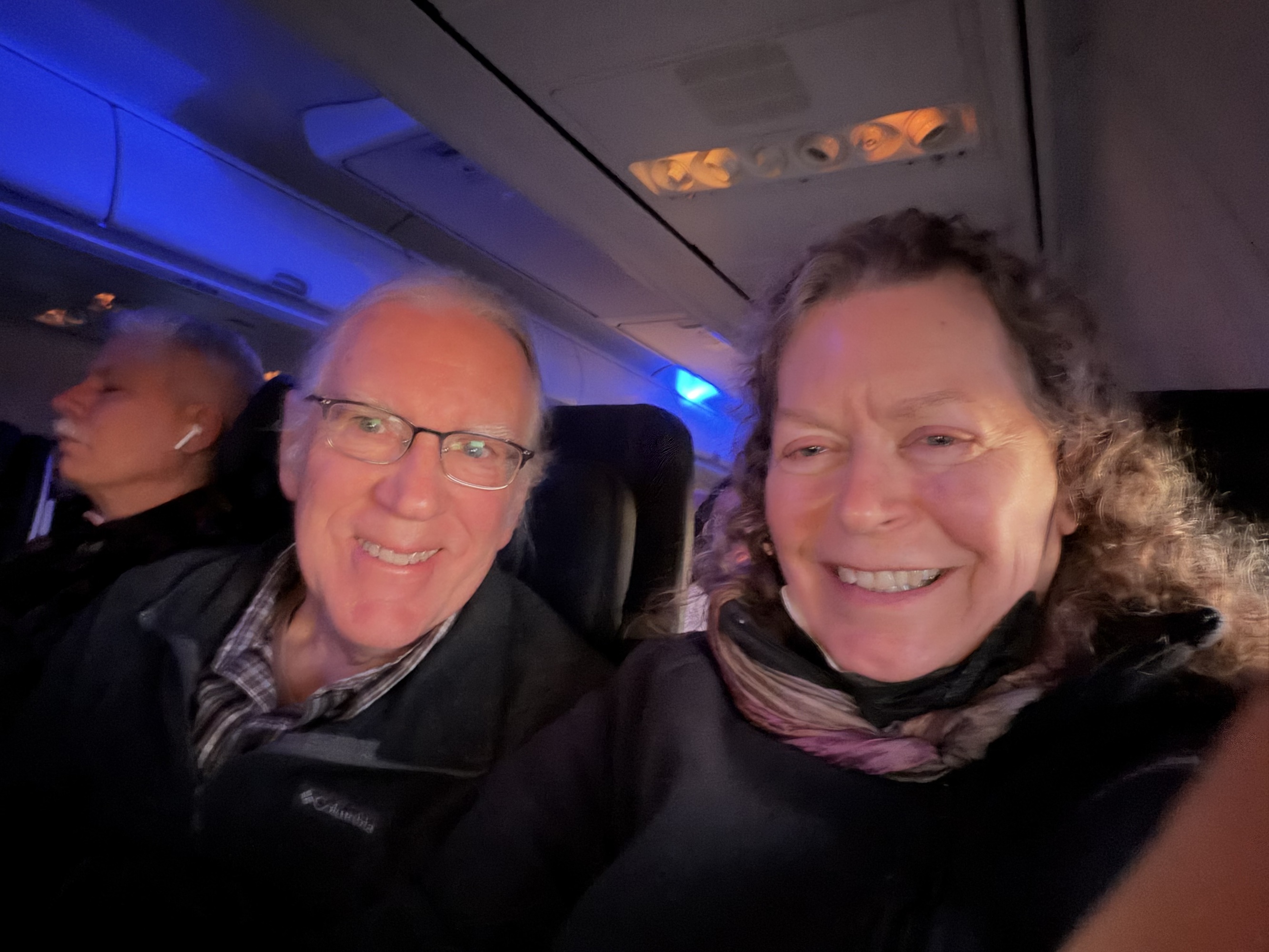 Maybe the way I was able to endure our longest segment of this flight was because I thought of the time Andrea and I were flying over the Pacific Ocean in the middle of a moonless night. We had no idea where we were. We looked down and saw little roads lit by glowing orange street lights outlining a jagged coast. It looked so neat and tidy that we both immediately agreed; Japan. It had to be Japan but we didn't even know we would be flying over Japan at all. Other possibilities could have been, Sakhalin Island, S. Korea or Taiwan but we were certain it was Japan, and it was. It's fascinating that we humans are able to know things we don't even know we know until we need to use that hidden knowledge. It's fascinating that little roads along a coastline seen from high above in the middle of the night can somehow appear unmistakably Japanese. How could a culture come through so strongly? What clues did our brains have that it had to be Japan? It's mysterious and magical to me.