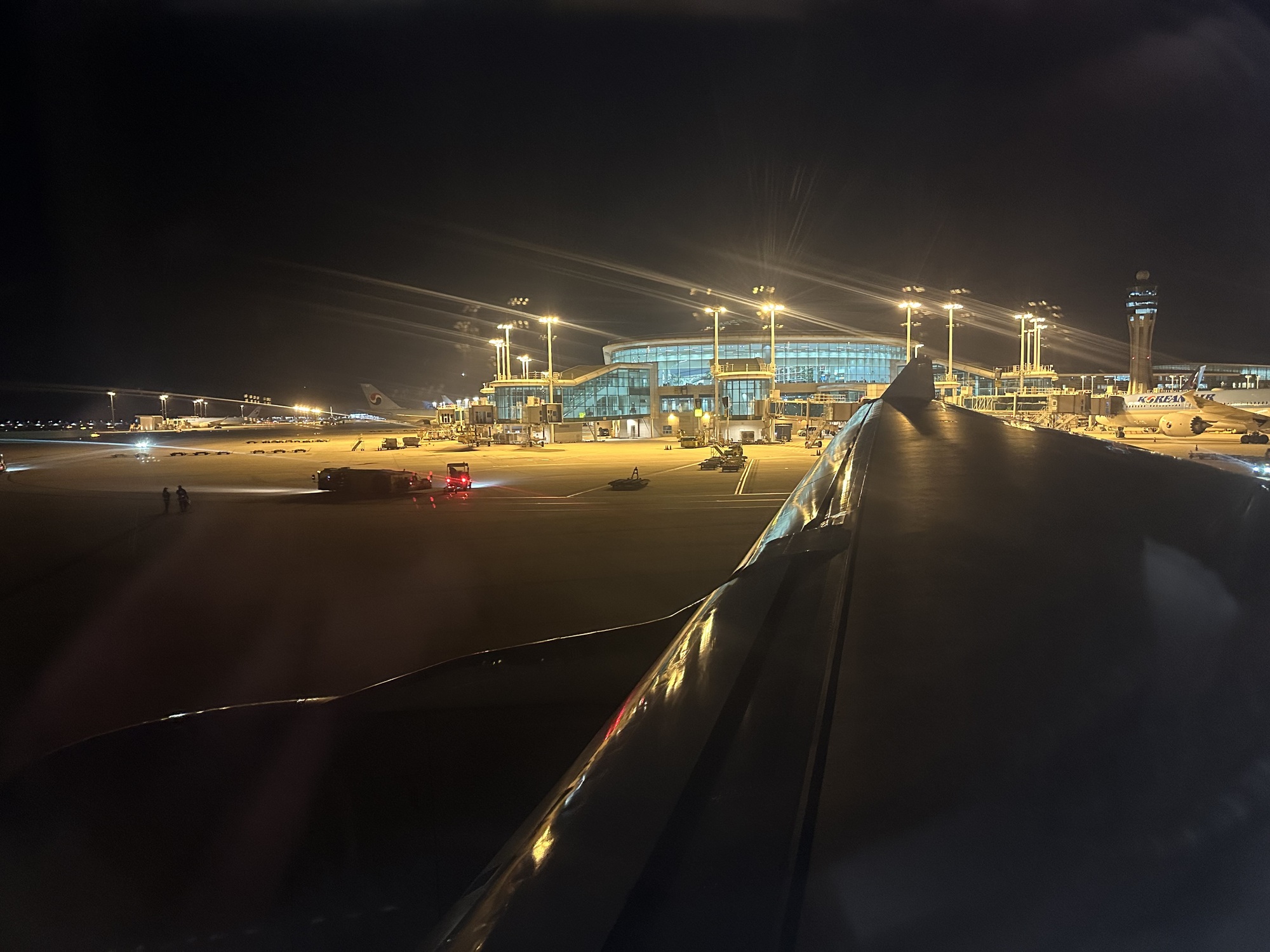 But, think about it. Take hundreds of people, pack them like sardines into a big, hot, metal tube, deny them much drinking water, and certainly do not give them bottles of bourbon and cute toiletry bags, and then fly the tube at 40,000 feet over a vast cold ocean at 550 mph.! It's really quite an amazing thing and at the same time ridiculous. An incredible experience especially if you don't think about your chances of survival in the cold remote northern Pacific being near zero. Quick correction; it would be zero.