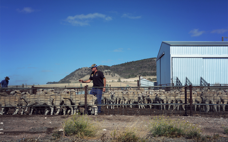 And so just after 8:00, with the sun already well up into the sky and a cool wind blowing strong up from the south, we stand in front of the farm house. In the driveway sits a dirty white ute, idling, smelling of diesel exhaust, with a black- and tan-colored Australian Kelpie dog barking out of excitement in the back. He knows what's coming.