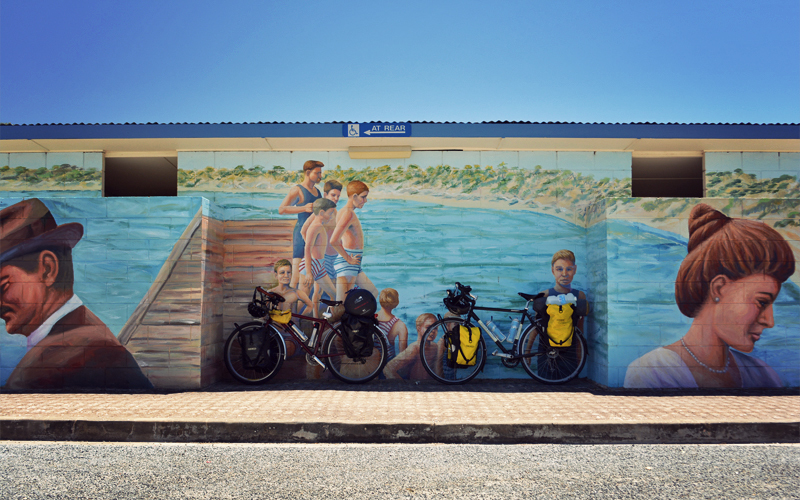 By the time we roll into Elliston, a second spoke has broken. In the quarter of a mile it takes us to ride from the public restroom to the grocery store a third one snaps. A quick web search shows that Ceduna has no proper bike shop anymore, and a call to the shop in Port Lincoln tells us that they only have a few cheap thirty-two-spoke wheels like the one I have, the one that's on the road to dying.