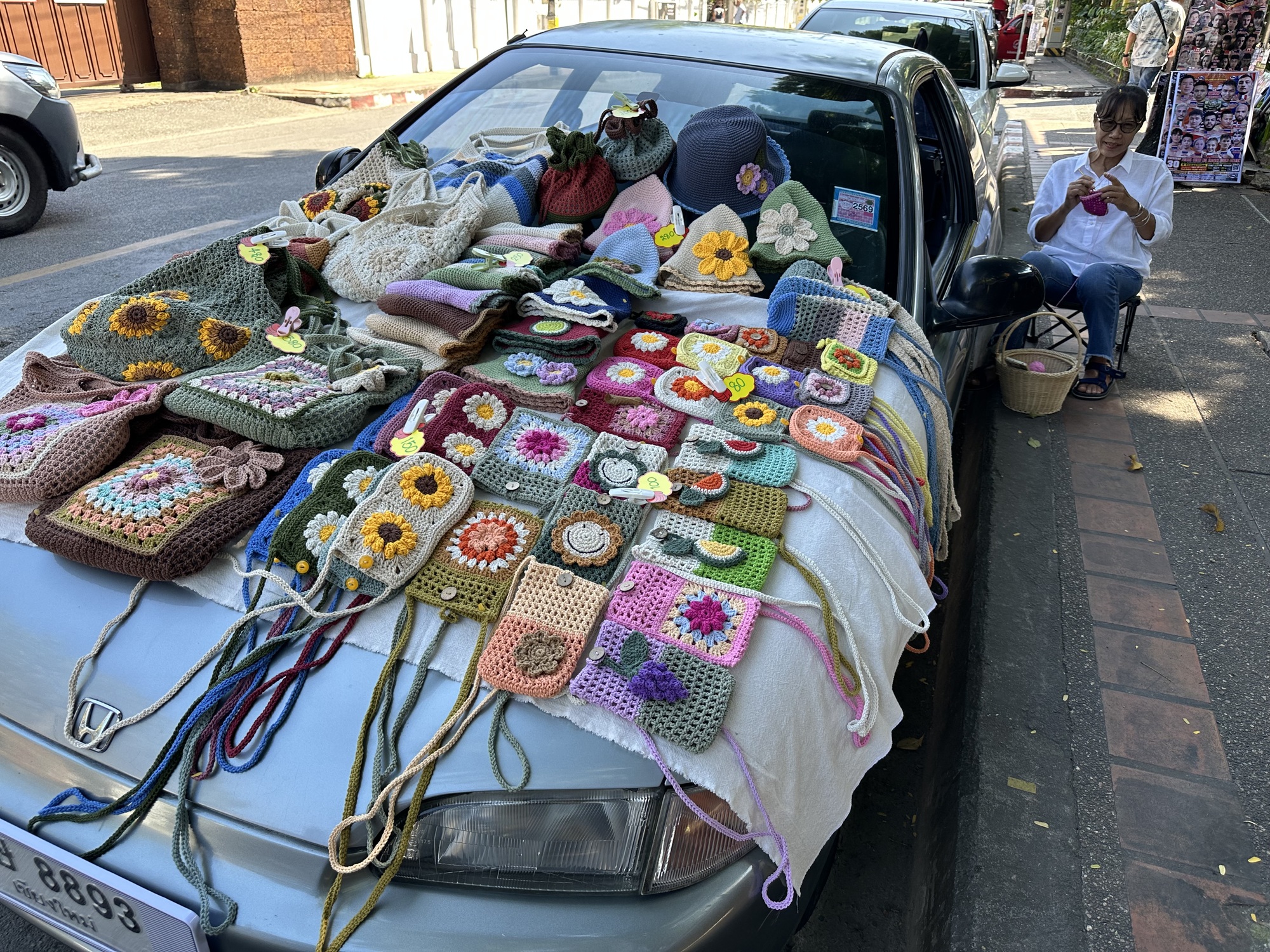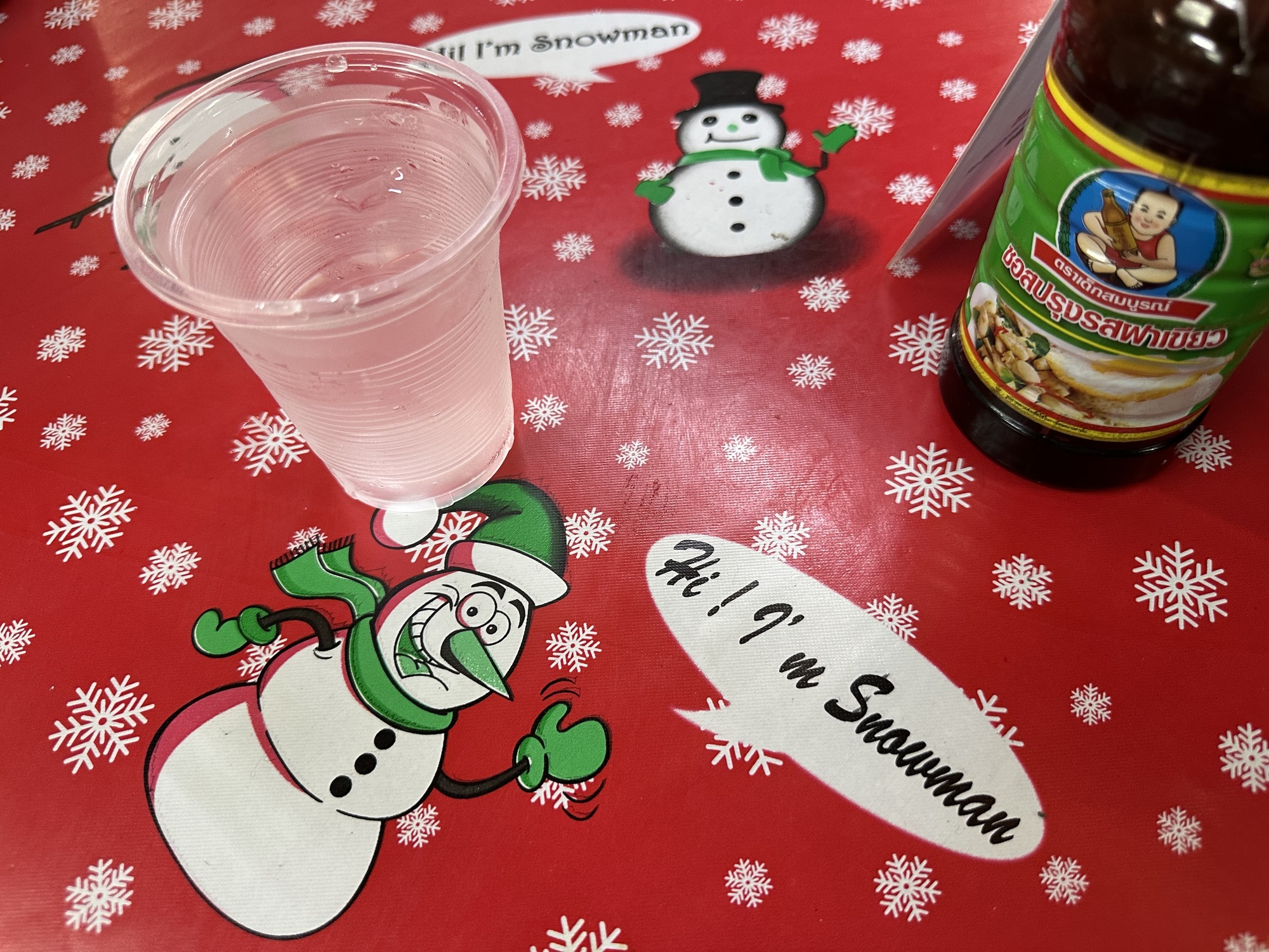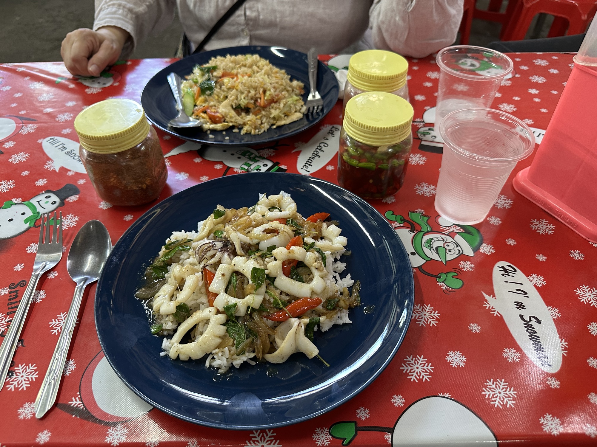 A sweet faced woman whipped up our food in her tiny stall, and it was incredible. For $1.25 apiece we were eating some of the world’s best food in a very humble setting. The perky plastic tablecloth was brand new and was patterned with a droll wintry theme, a nearby radio was playing vintage Thai hits, the market ladies were having a gossip session in that lovely northern Thai dialect. A lot of happy sensory boxes were getting ticked.