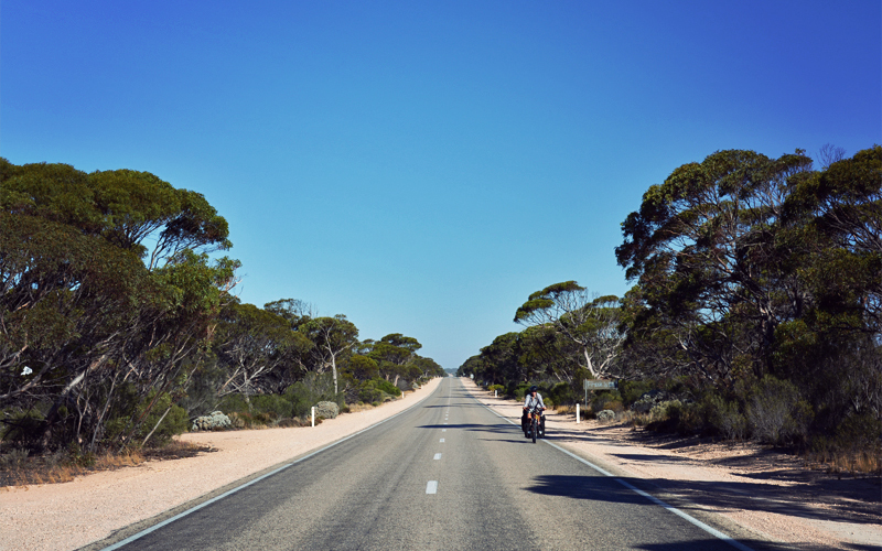 Each of the four panniers that we both carry are filled to capacity with the food and water we need to keep us going for the first part of our long push to the west. I've never carried so much weight before. But as much as we'd like to travel fast and light and charge across the outback as quick as we can, it's difficult to do that where we're headed because services are so sparse and the distances between them are so huge.