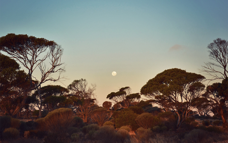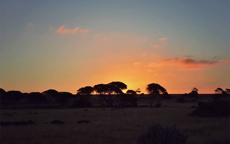 As if it's all part of some choreographed routine, as soon as the sun dips behind the horizon the air cools, the crickets start to sing their songs one by one, and the humidity rolls in and turns the surfaces of our panniers and handlebar tape ever so slightly slick. Soon we find a path off into the bush, and there we set up the tent under the light of a moon half obscured by the rolling haze of a line of low clouds. Somehow we managed to ward off wheel failure for one more day, and so it's with cautious optimism that we talk about what the Nullarbor might have in store in the 650 miles that remain in between us and our next left turn.