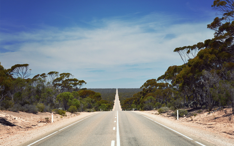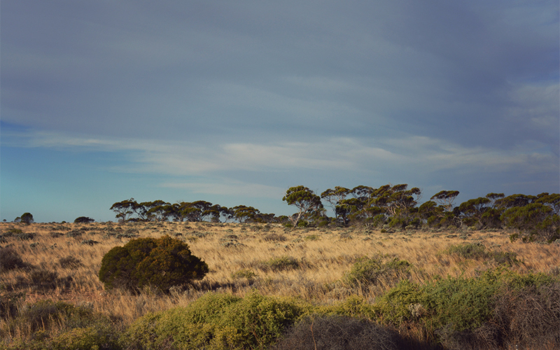 In the hour that we spent mucking around at Nundroo, every bit of cloud in the sky disappeared. Not far beyond the roadhouse we cross into the Yalata Aboriginal lands, where almost at once the gum trees become bigger, their branches more numerous, and their leaves greater in number and brighter green in color. For the first time in weeks, the farm land that has never failed to appear on either side of the fence line finally falls from view. All we see now in any direction is native bush land, just as it would have looked to someone waking through this part of the country hundreds or thousands of years ago.