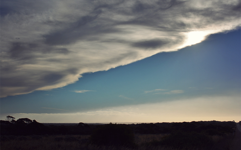 When we no longer feel like riding, we pull off down a narrow track that's more sand than dirt and head into the low-lying gum tree forest that we've been cycling past and looking into with curiosity for the last nine hours. There we climb inside the tent, eat a modest dinner, listen to Father John Misty and Cass McCombs, and watch the setting sun reflect off the low clouds that moved in over the previous hour, casting them in pastel colors and intricate textures of impossible beauty that have vanished forever fifteen minutes later. With the doors of the tent held open, we feel the cool of the breeze, we see the light of the rising moon dance as it passes through the tree branches at ever-changing angles, and when we look toward the western sky we wonder what wonderful things Australia might have in store for us tomorrow. To everyone but us it seems audacious to be crossing this continent by bicycle, but in moments like this it's impossible to imagine doing it any other way.