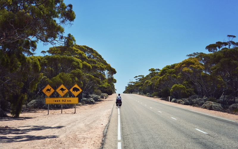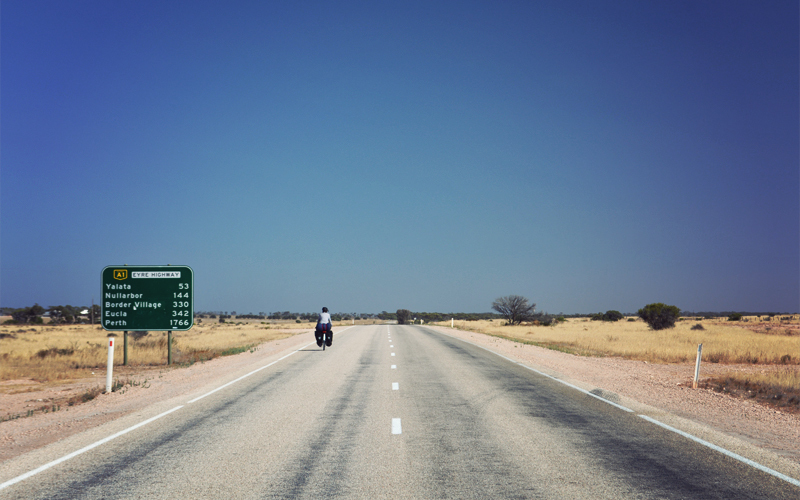 After Nundroo there's exactly one gas station in the next 200 miles. That's it; no water, no food, no bathrooms, just wide open Australia. And there's something very exciting about setting off across such a big distance, and knowing that we're about to travel all of it under our own power, carrying everything we need to make it through. It will be a good test of what we're capable of, and it's a test we're anxious to get started on.
