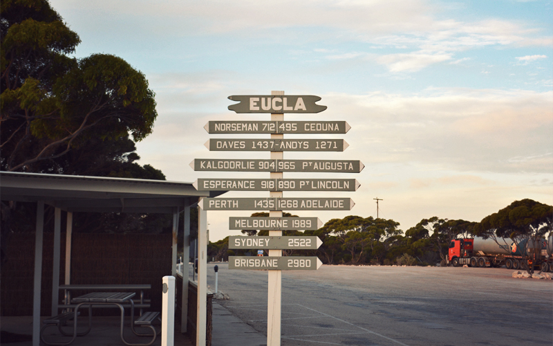 We make it all of eight miles before we stop again, because that's how long it takes to reach the town of Eucla, and towns out here are so scarce that we're now in the mode of stopping at every one of them no matter where they show up. There we stuff our faces with carrot cake and chocolate muffins, because why the hell not?