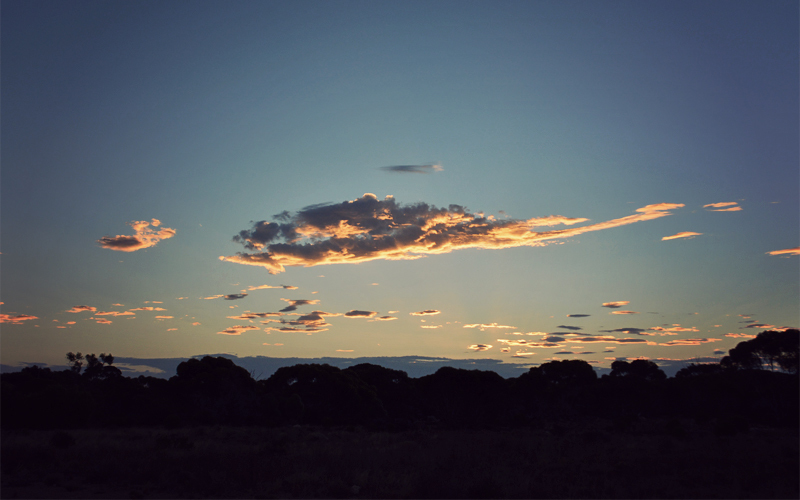 Just outside of town we cross time zones again, into the Western time zone. We get back another forty-five minutes, only two days after gaining an hour and forty-five minutes at the Western Australia border. With the sun already past its high point in the sky, but the clock reading 11:00, our perception of the normal interaction of daylight and time becomes even more fractured.