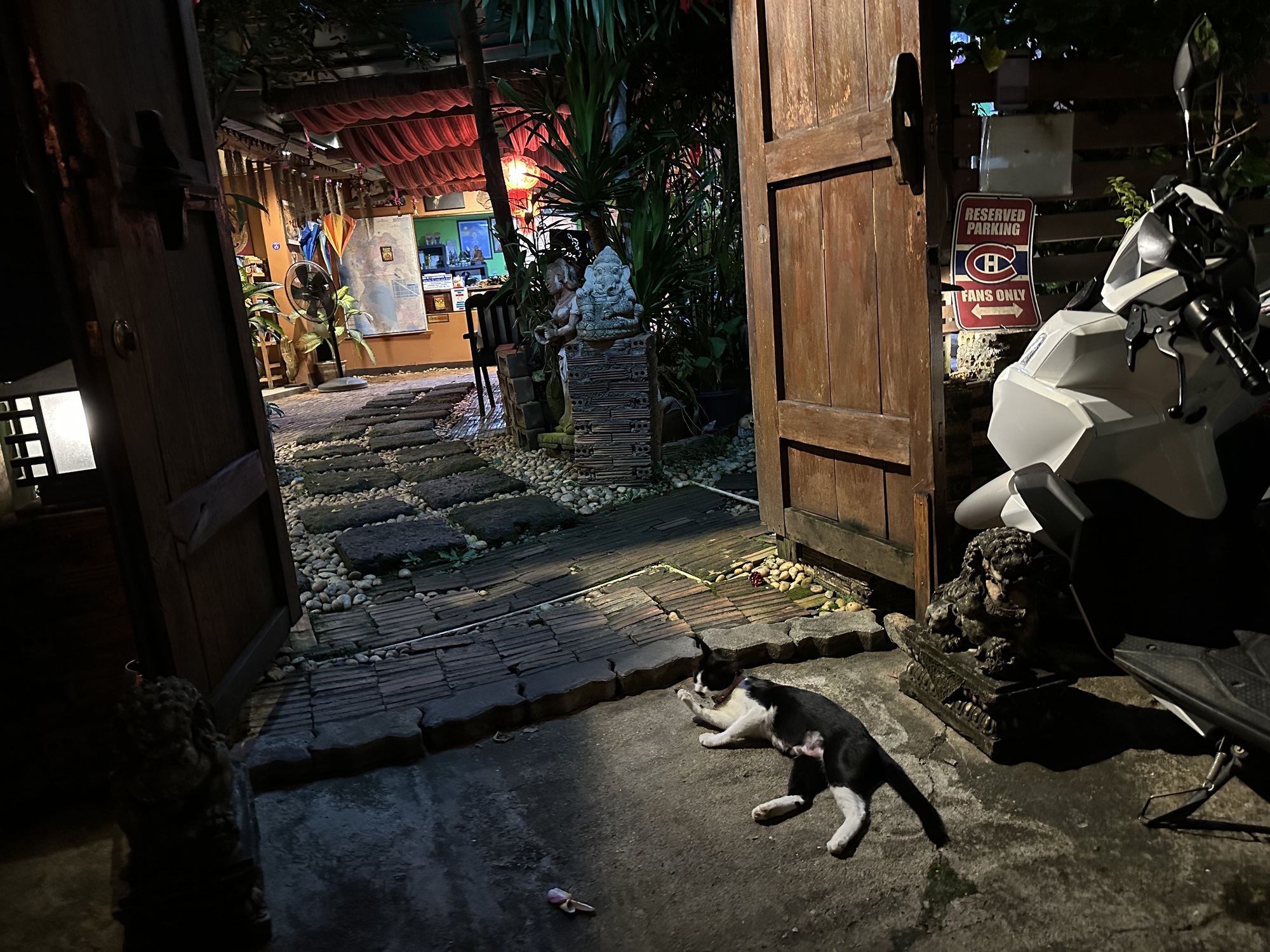 The owner is a friendly character from France who came to Thailand nearly forty years ago and married a nice Thai woman. She is at the front reception area all the time and he holds forth with all the travelers in the courtyard. He's good at holding forth. I really enjoyed talking with him about the world and now ya'll can rest assured we have solved a lot of its problems. I expressed grave disappointment about what is going on in the U.S. and he kept stopping me short with, "For now.... For now." He had a look of knowing as if he had seen such things before. His repeated, "For now," was strangely reassuring for me. He said he had had the opportunity when young to have a career in something he didn't elaborate about. He said it would have made him well to do but it didn't feel right. He took a trip to Thailand and his heart felt more at home. Forty years later he is still here and loves being here every single day. I wasn't a bit surprised by this and we talked about the essential Thai personality. He said sure there are problems in the country, there are problems with the government but the Thais don't dwell on any of those problems. They don't let the problems create divisions and anger. They understand that "For now," he was talking about. Thais go about their lives knowing they live in paradise and are gentle and happy.