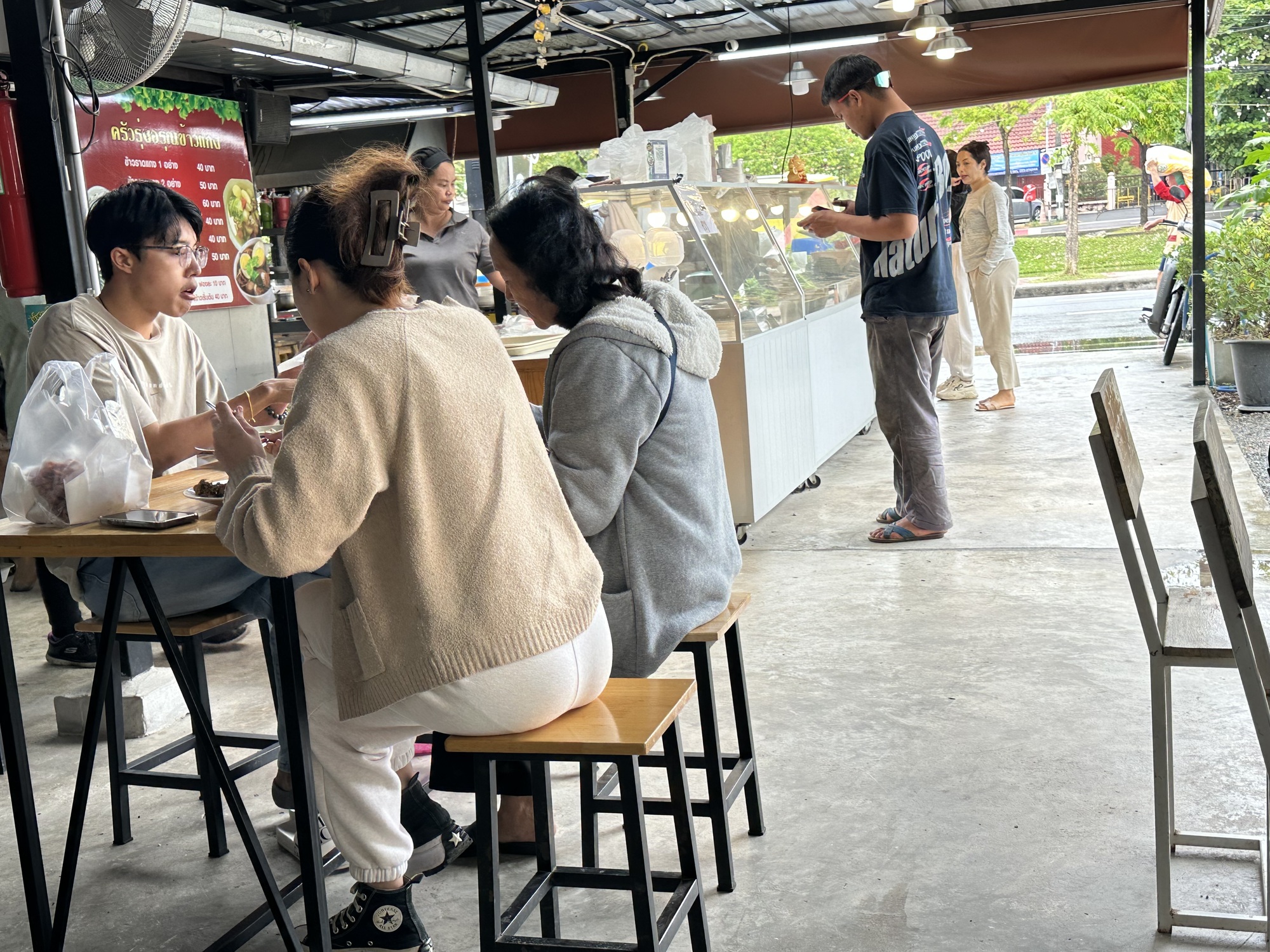 From what I have just said, you might think we have been hanging around our guest house a lot but in fact we have been out walking the tiny sois exploring while constantly salivating over food which is everywhere and I want to eat it all. We stumbled on the cleanest tray food restaurant we've ever seen and I was in heaven. The reason I like tray food so much is because it allows a person to choose foods that are new to you. You don't need to know names, you just point. It is far and away my favorite Thai food. It's true Thai food, old style Thai food, and this place had no tourists. I'd say 99% of the Thais lined up to choose their dishes were on their way to work. It was a very popular place and I see why. I loved the two selections that I got but that left 23 other things to try! Why is my stomach so small in situations like this! I want to try it all.