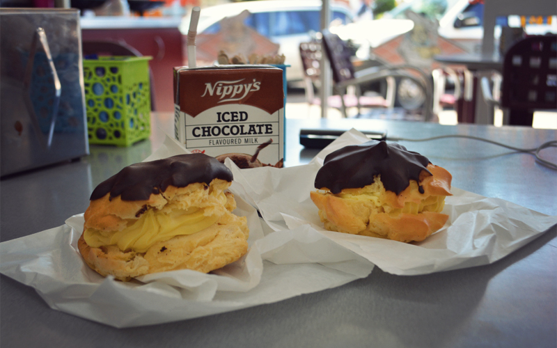 It looks like you also have a bakery filled with sausage rolls and croissants and custard puffs and chocolate milk, and they're all fresh and delicious and wonderful. That's so nice of you, Esperance.