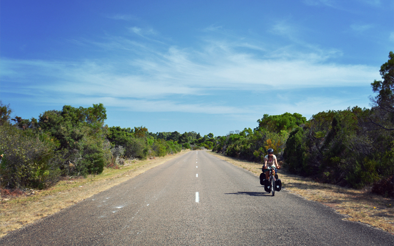 Somehow Esperance manages to have suburbs, but after we clear them we find ourselves once again rolling up to a junction with Highway 1. As we hang a hard left and feel the tailwind start to snap into place, a little smile spreads across my face. This is it: our last big run to the west. In less than 500 miles there will be no more continent left to ride. What for so long seemed a distance almost too big to imagine covering in just over two months, before then turning into a distance that might be too great for my rear wheel to handle, now seems within reach.