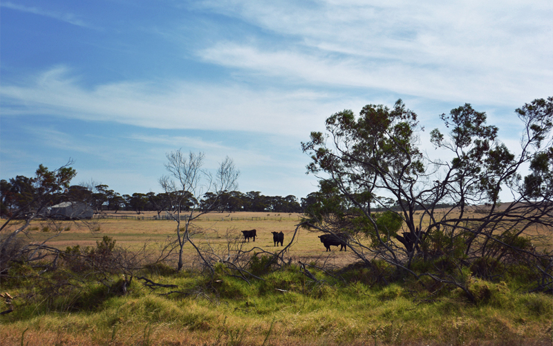 As with almost all of Australia's coastal highways, as soon as we leave town the views of the coast disappear and we return to a world of grass dancing on the wind behind fences of rusty barbed wire. It's also a place where the shoulder runs no more than a foot wide, and there's enough traffic that we never make it more than a mile before diving off into the shoulder because two cars approach at the same time, or a curve or a crest blocks our view of the trucks that might stand beyond.
