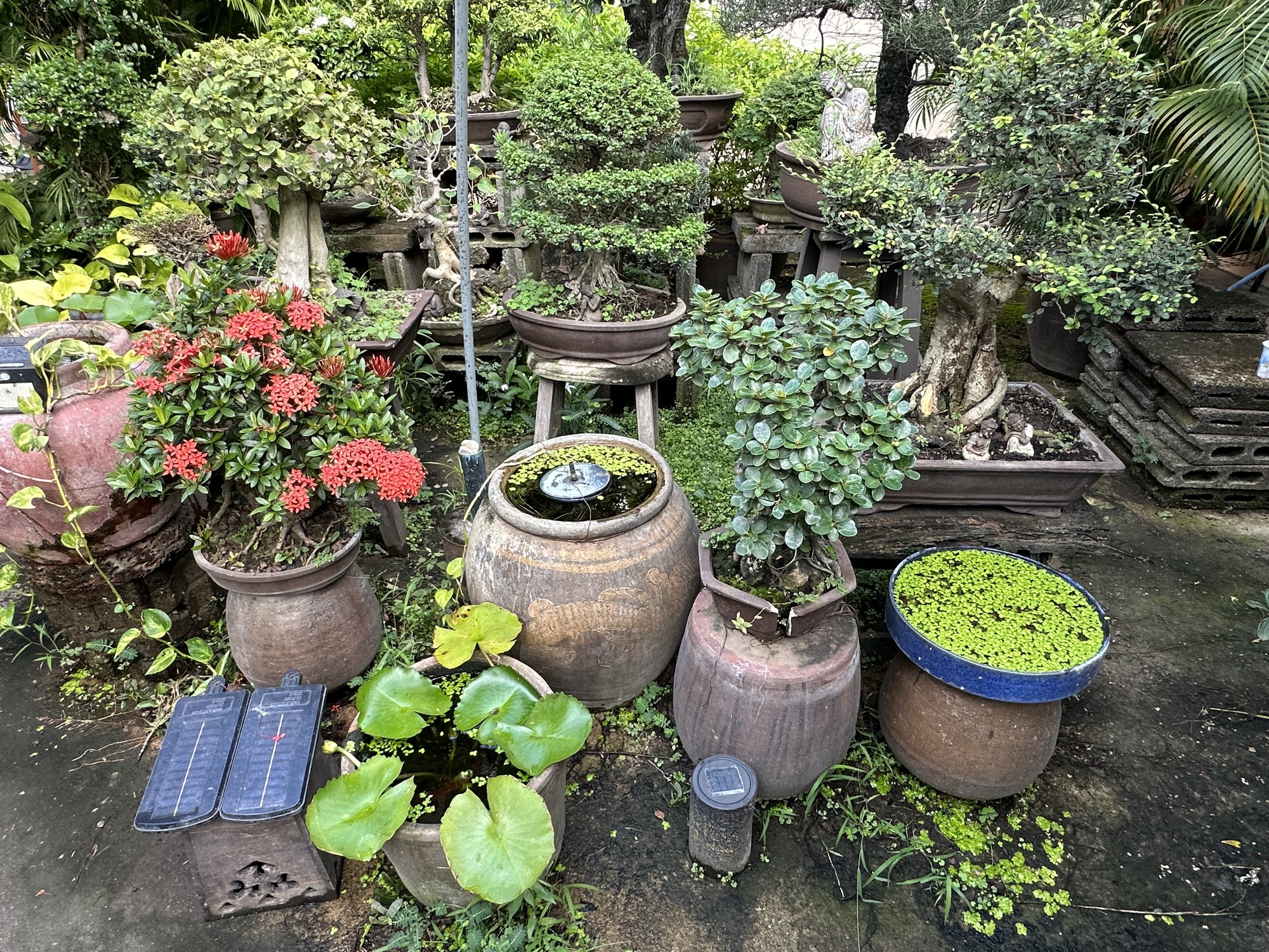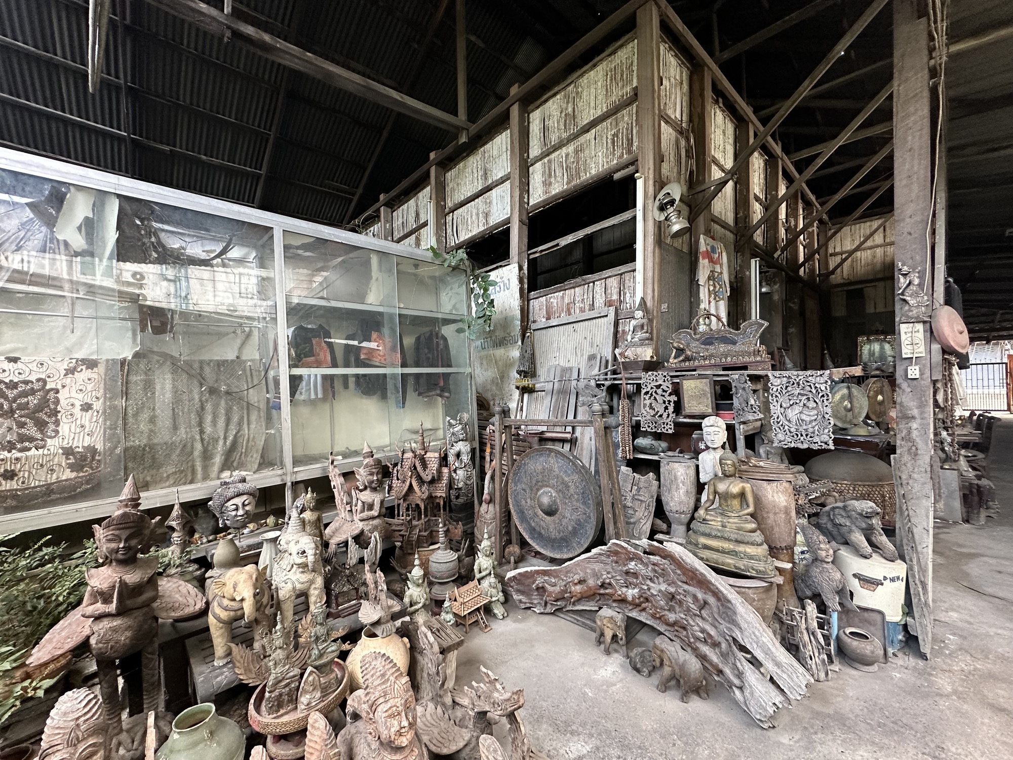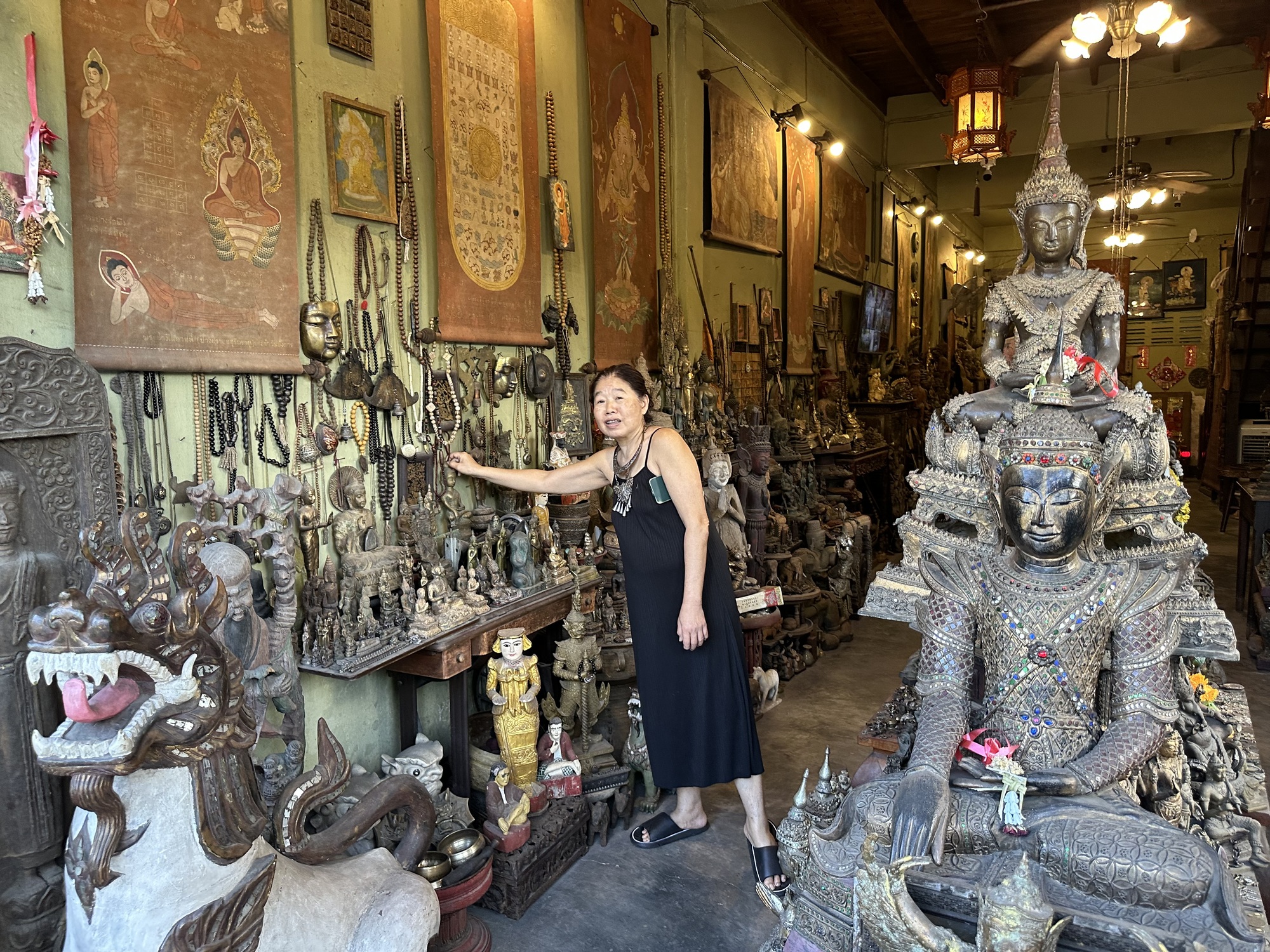 I don’t have time in this life or this journal to describe what all we saw in that shop (which mysteriously kept expanding like something from Alice in Wonderland) and the amazing garden. Gorgeous towering plants. A giant rice mill/silo that had historic designation. And stacks of antique stuff everywhere. Steps away outside the portal of this magical place of dark and light, artifacts and life, traffic roared and honked oblivious of this entryway to paradise.