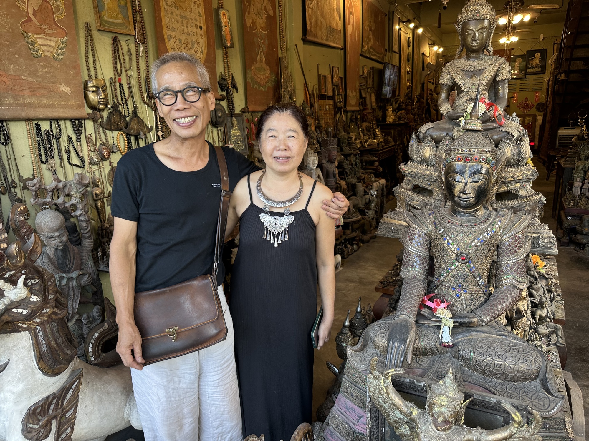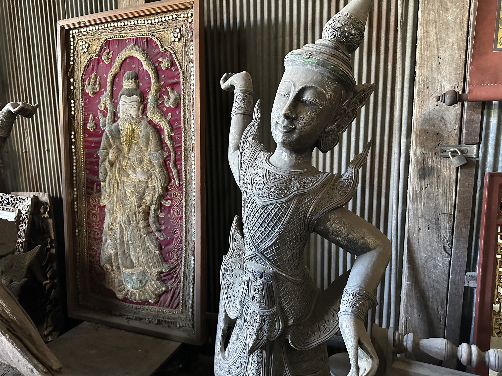 Husband returned as we were stopped at the sidewalk entrance. He had run next door to the Burmese restaurant (which also served Thai and Indian) and ordered food for his diabetic darling. They stood there at the front of their shop, gazing at each other with pure adoration. Behind them dusty symbols of faith, love, compassion, community. My back hurt. My heart was full. I get tears just thinking about it.