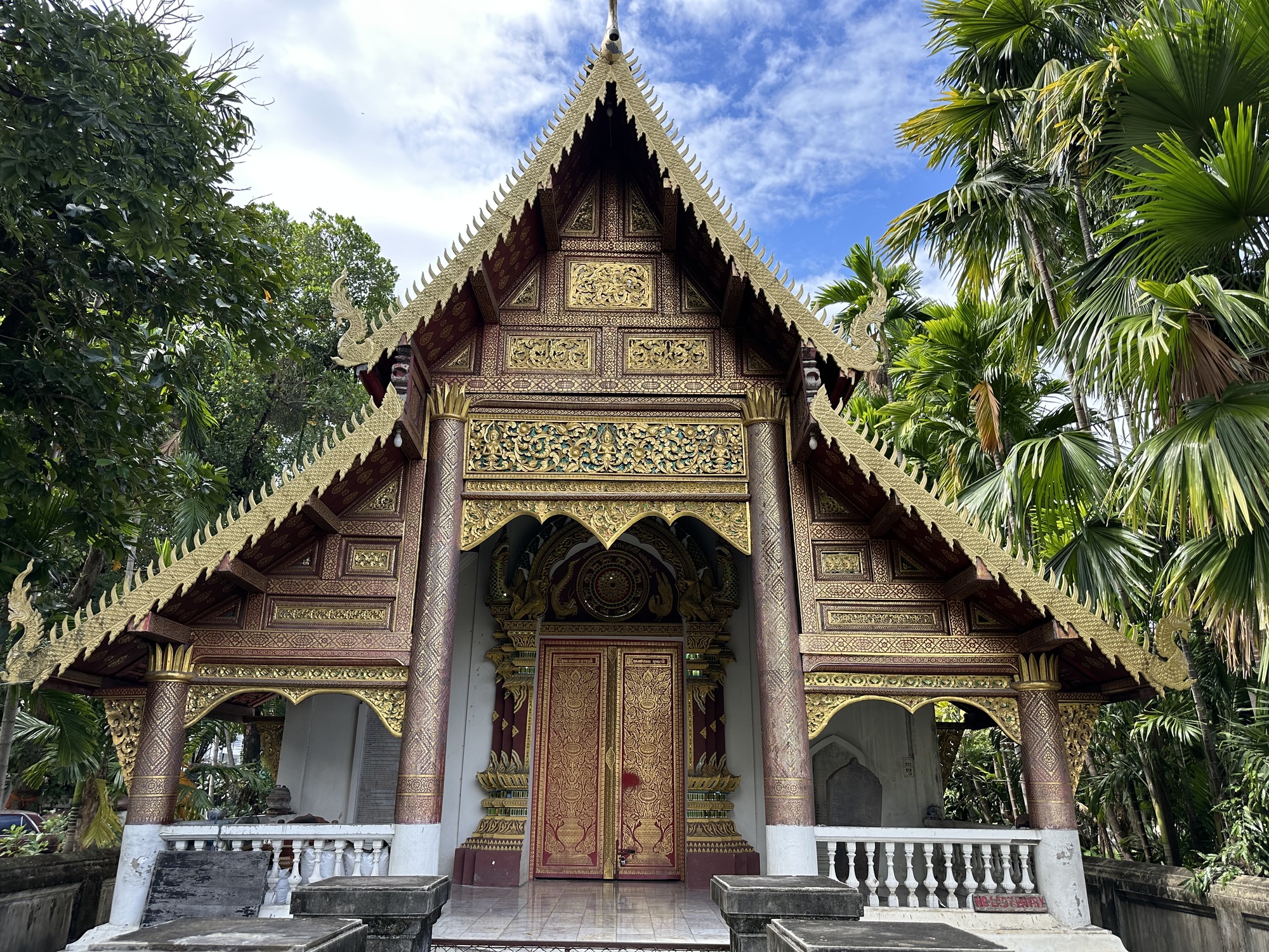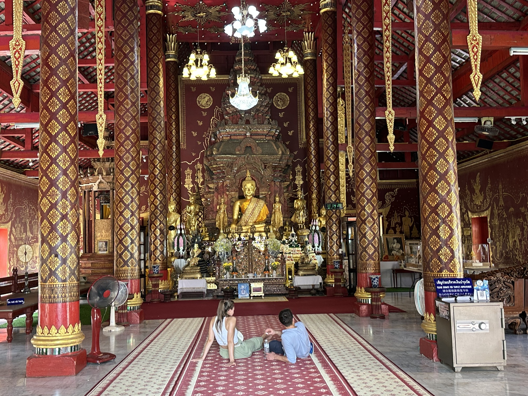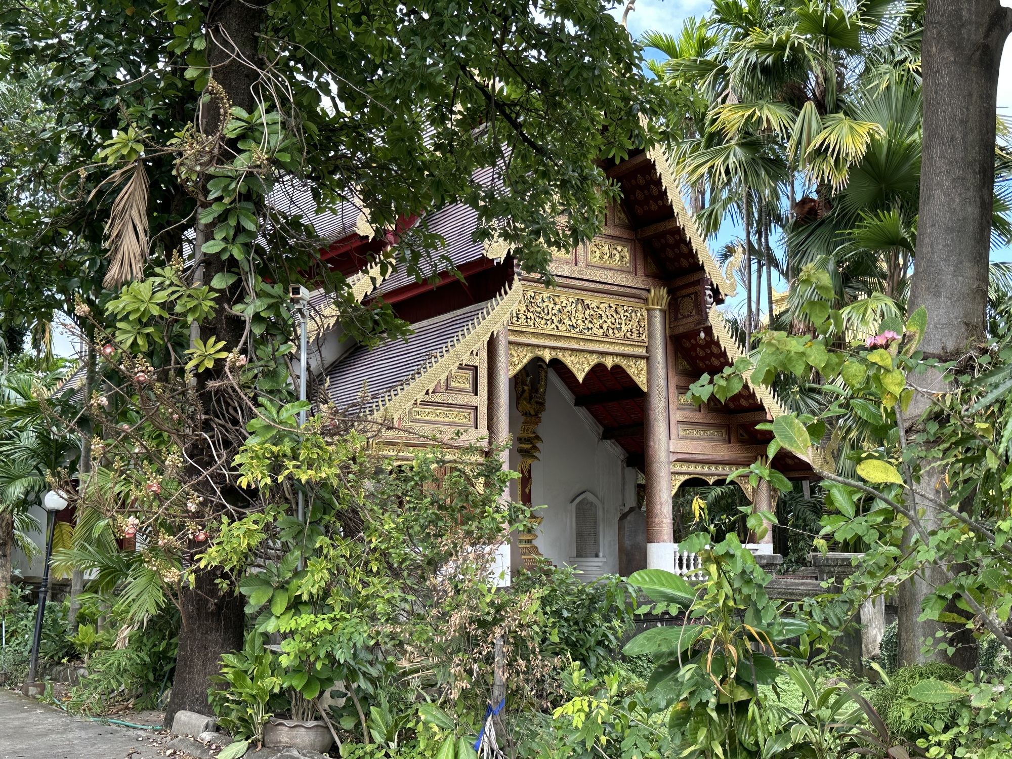 We needed to check out of our place by noon, and had two hours to kill before the next place so we took a ride around Chiang Mai and found a temple for me to chill in and watch the trees and Bruce to walk around and look at. Nearly all the other temples seem to be gearing up for Loy Krathong and are bustling and not the vibe I wanted.