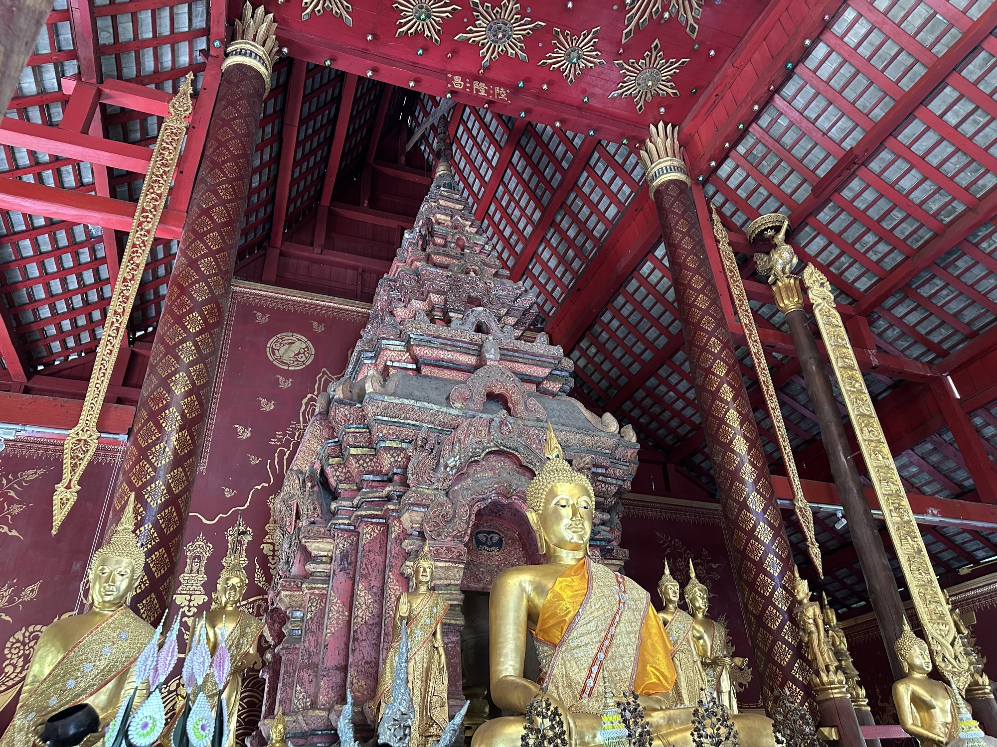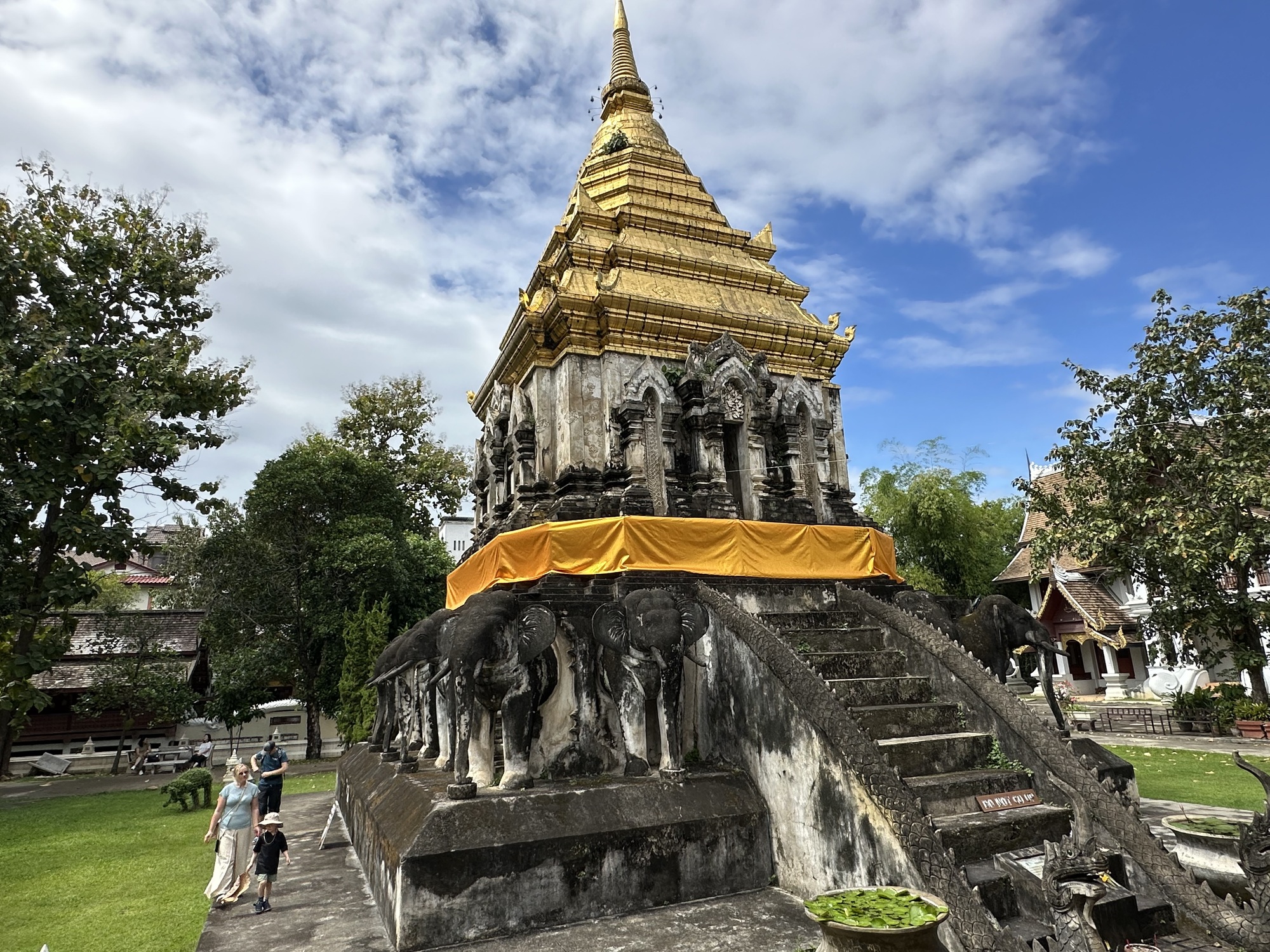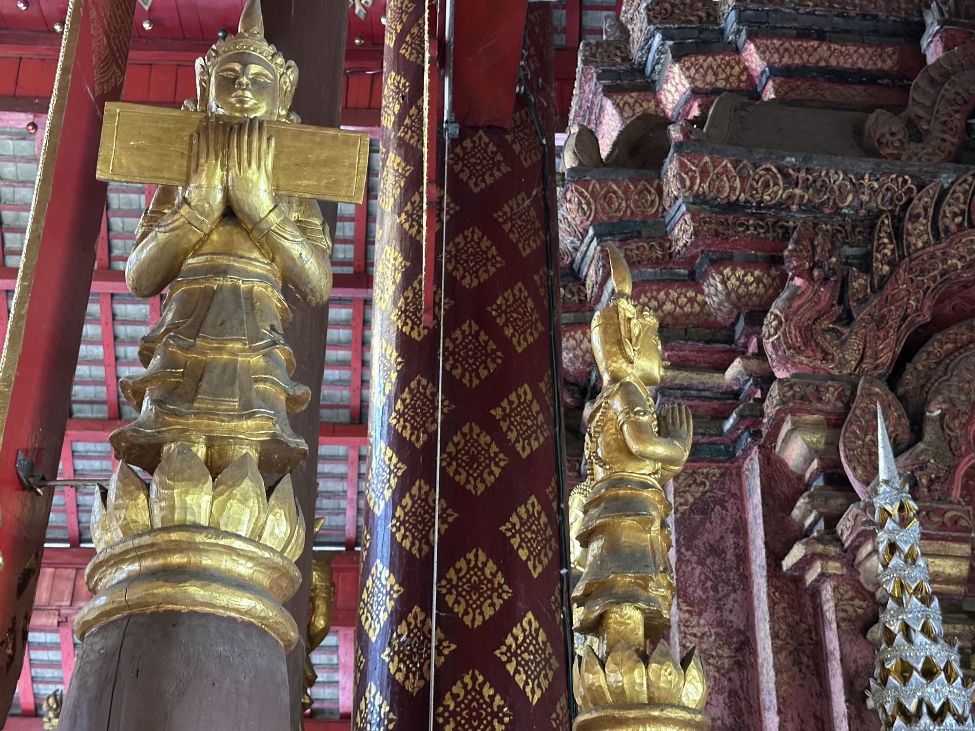 We needed to check out of our place by noon, and had two hours to kill before the next place so we took a ride around Chiang Mai and found a temple for me to chill in and watch the trees and Bruce to walk around and look at. Nearly all the other temples seem to be gearing up for Loy Krathong and are bustling and not the vibe I wanted.