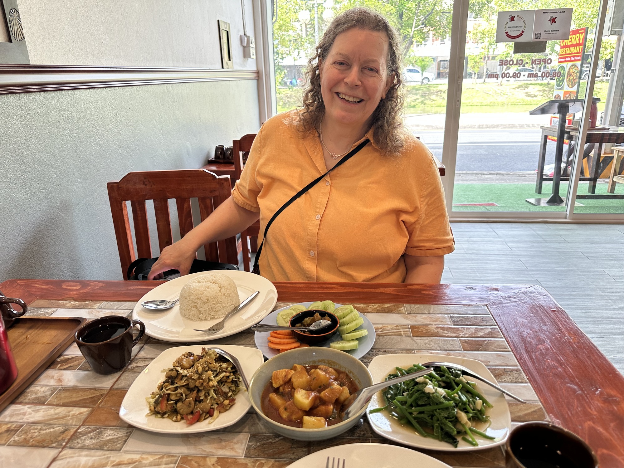 At the AIS store, we waited for the designated English speaking staff to come out (everybody wearing black). He looked at my email receipt and kind of whistled under his breath, “ooh, you paid a lot”. Grrr. Yes, I paid three times normal to have it work on arrival! But live and learn. He did something mysterious and took another photo of me and my passport and by golly it worked. Yay! Bruce got his installed, and now we can go out into the wilderness and have service.