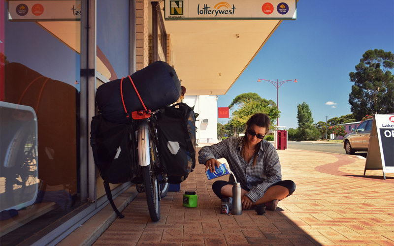 "Here we go!" I call out to Kristen as we pedal away from the grocery store. "Off to ... um ... I don't even know what the next town is."