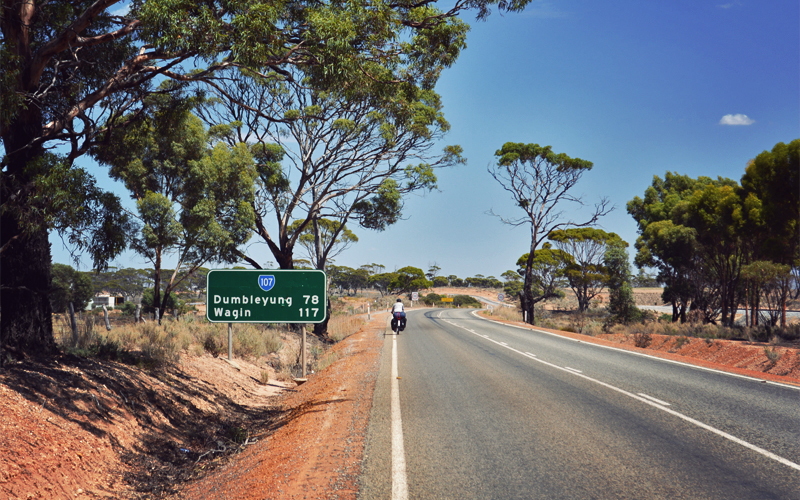 As we approach the turnoff to Kukerin I have my bike computer switched to its odometer setting. Every minute or two I look down, and as the numbers grow larger I get more anxious about the ones that follow.