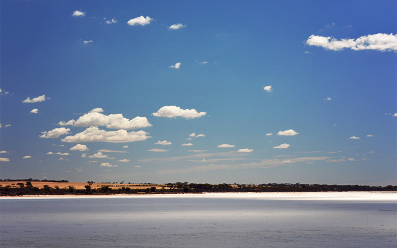 It doesn't much matter now; we just have to somehow cut the distance between Lake Grace and there. With the temperature at a hundred degrees at 11:15 in the morning, we crank past the swimming pool and tennis courts and lawn bowling pitch before crossing the broad and waterless expanse of the lake on a narrow isthmus. Five miles out of town a previous patch on the tube of the rear tire fails. When I patch it again it fails within thirty seconds. At this point it won't shock me if I ride into Bunbury balancing on the back tire with no seat, one pedal, and exactly one gear that still works.