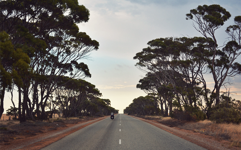 As the first spots of rain deflect off our helmets we roll into Dumbleyung, hang a sharp left at the main junction, cross over the railroad tracks, and roll up to the covered porch of the town's pub, which looks like it's been around for better than eighty years. We reward ourselves with warm pasta and chicken and a small collection of cold beers. We enjoy them while looking out the windows at lightning bolts slashing their way to the ground through the open north-facing windows, and while trying to size up the half dozen people who drink alone in the bar on this night and who look like they drink alone in the bar on most nights.