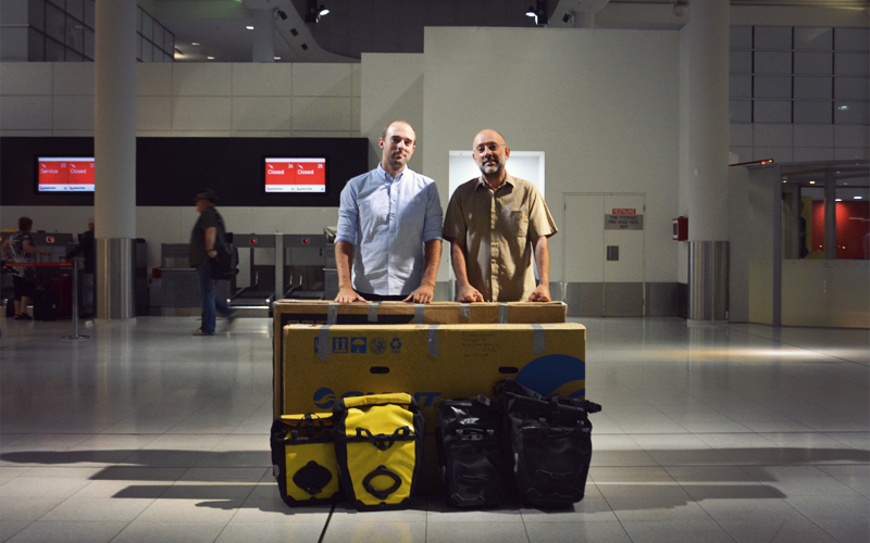After taking an hour to pass through about fifteen levels of Homeland Security and track down our bike boxes, we emerge from a tunnel that a crowd of people waiting for loved ones look down into with great interest. It might be the closest we'll ever get to feeling like celebrities. We search the faces for the only one that matters to us. Within twenty seconds we find it: Kristen's mom, smiling, waving, happy beyond all words that her oldest daughter has returned home safe after five months spent on the other side of the world.