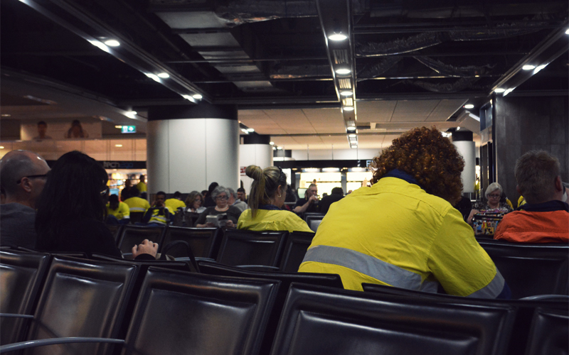 One of the things that's still hard to wrap our heads around is the scale at which mining happens in this part of the world. And so it goes this morning where we soon realize that every other passenger at the airport wears the familiar orange or yellow work shirt that calls them out as mine workers. Victor tells us that they're called fly-in-fly-outs. They catch a flight out to some far-off operation at the start of the week, work in the mines for four or five days, return at the end of the week, and then repeat the process for months on end. They're all between twenty and about forty-five years old, ninety-five percent of them are men, and they all seem to talk about one of three things: mining, how they spent the money they made from mining, and how much they drank over the weekend.