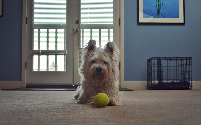 That's exactly where he is when I push it open. For a moment he stands still, staring straight at me, unsure if the person that he must have assumed was gone forever has somehow returned. But as I step inside and begin to walk up the stairs he springs to life, his body wiggling from furious tail wagging, his voice a joyous howl, his face reflecting nothing but excitement. His hair is out of control because he hasn't been groomed since I left, and he could use a good scrubbing to get rid of the dirt stains on his face, but he's still Walter. He seems healthy and happy. He shows no ill effects from the leg injury that had been bothering him for months. There's no way I can explain to him how sorry I feel for having left him behind, nor is it possible for me to tell him that I'll never again make that mistake. All I can do is rub his little head, scratch his tiny back, throw the tennis ball around the living room for him to go fetch, and start down the long path of rebuilding his trust.