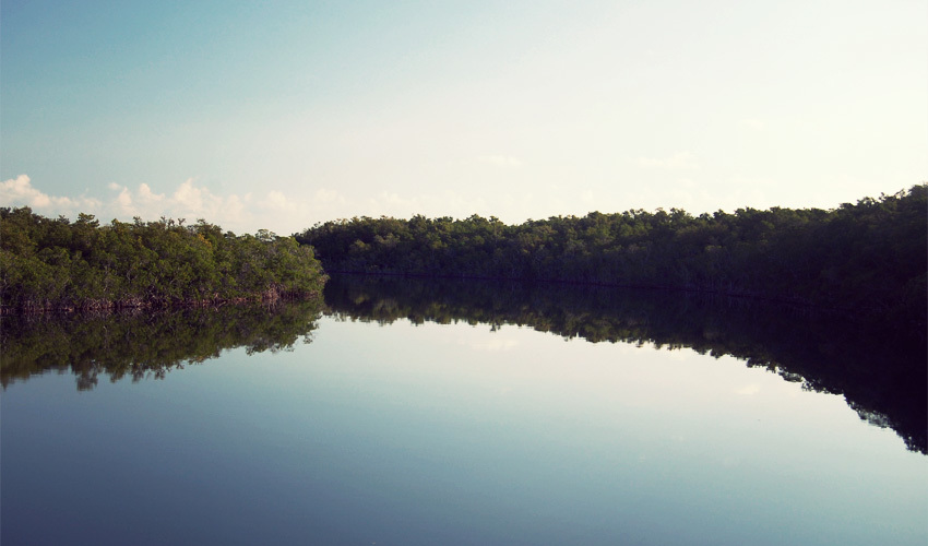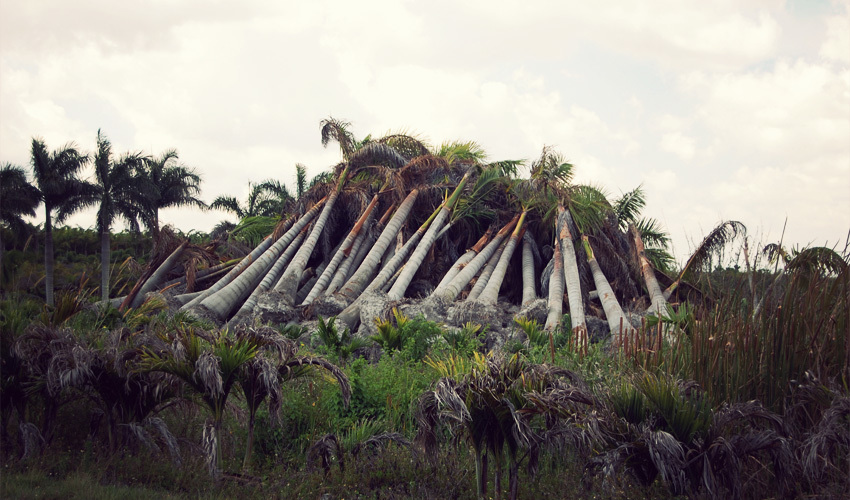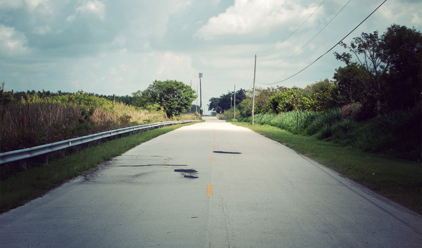 This happens two more times, a little less dramatically, before the road spits me out into Florida City. I spend the afternoon riding past things you won't see in Seattle: a 65,000-seat race track, palm tree farms, and fighter jets tearing across the sky after taking off from the nearby military base. The sun kills; my hands and arms burn and continue to turn deeper shades of red. I only get a break when the clouds pull in front of the sun. One of the times when this happens I look a few hundred yards ahead and see a distinct line running across the road. On my side of the line is the shade; on the other, the sun. As long as I keep my speed below 11 miles per hour I stay in the cool. It's a bizarro version of the movie Speed and I'm Sandra Bullock.