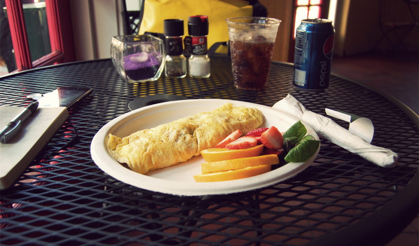 Tom's right. The omelette is one of the best I've ever had. I'm eating and writing half an hour later when I look up and see him walking through the door. We talk for more than an hour about bikes, traveling, life in Louisiana and Florida, and the idea of packing everything up for a few months and heading out across the country. He's retired and sometimes thinks about doing it now that he has the time. I tell him the hardest part is getting started. If he can make the time, get the gear, and book the flights, the riding mostly takes care of itself. I hope he decides to take that leap.