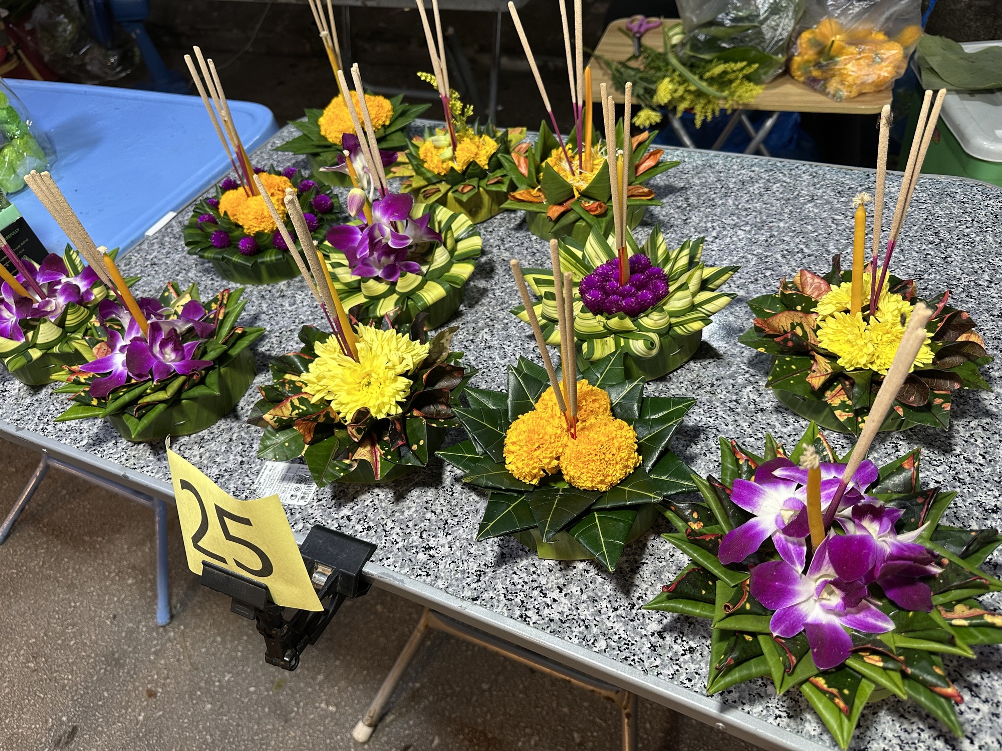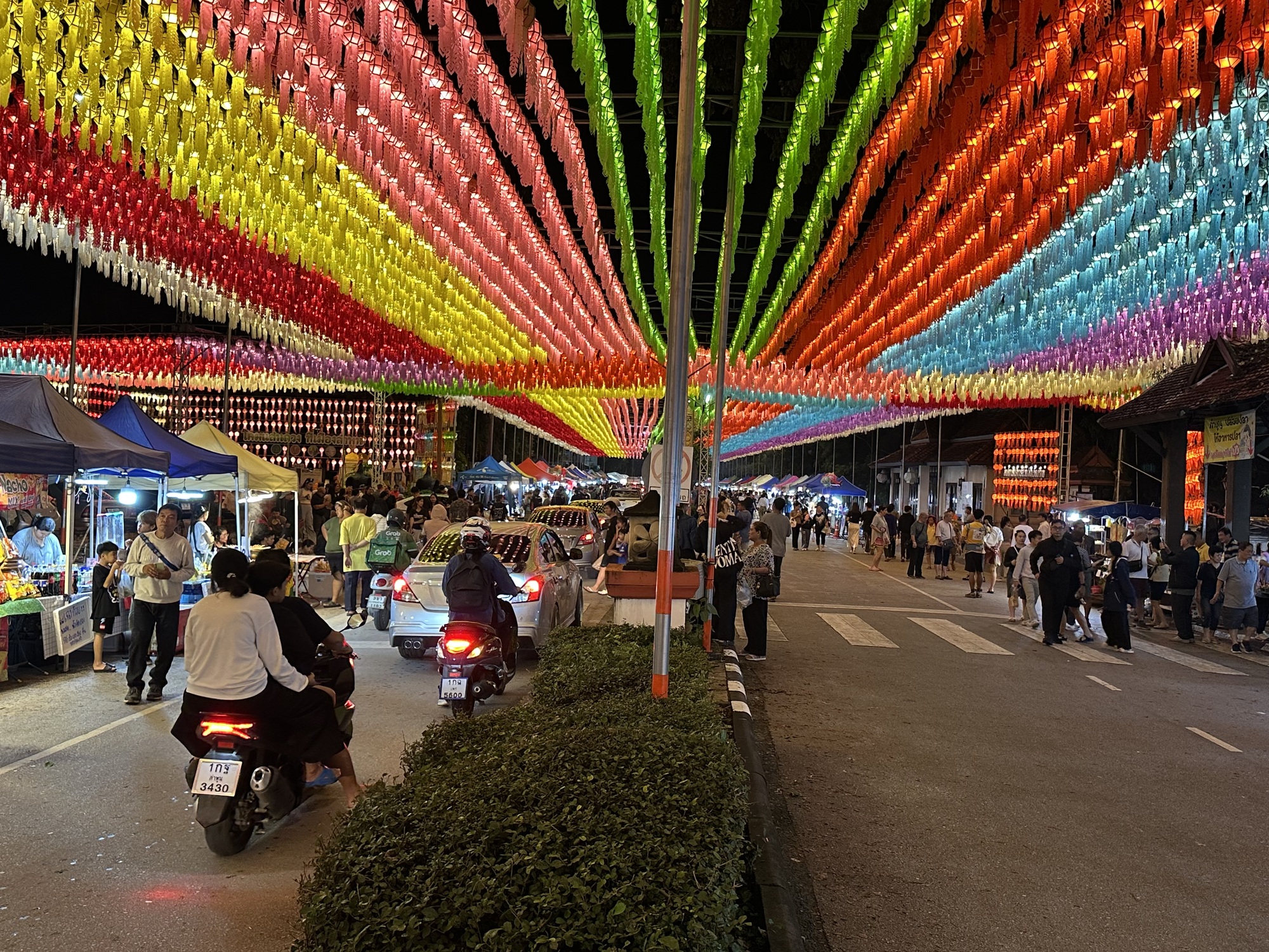 The main street was lined with stalls of food, massage tables, clothing, and krathongs. The main krathong event will be tomorrow, when people release the adorable leaf and flower arrangements with a burning candle and incense, into the river. I want to release one too, but I have a day to think about what I’m releasing and why. I’m sure I’ll come up with something.