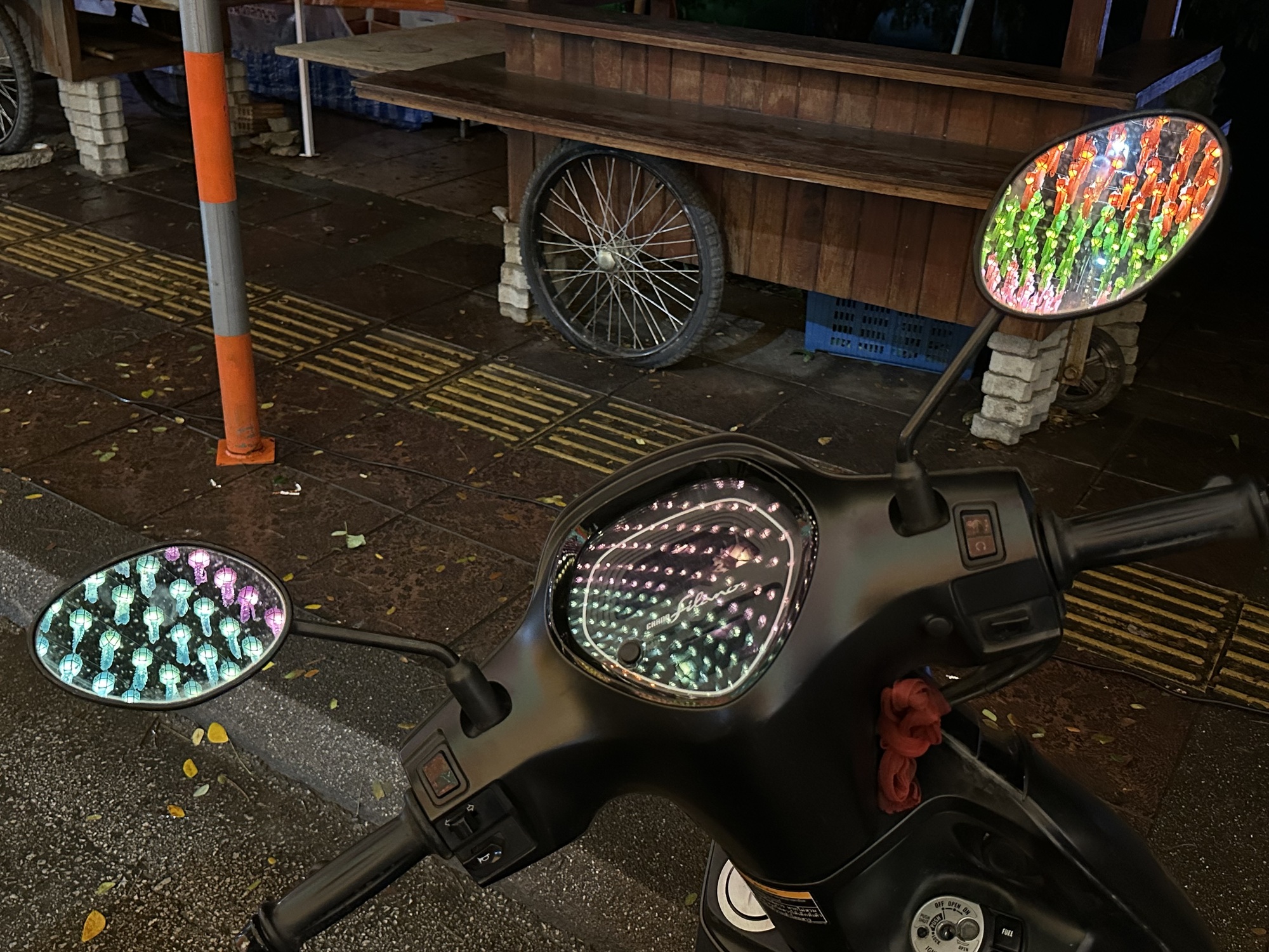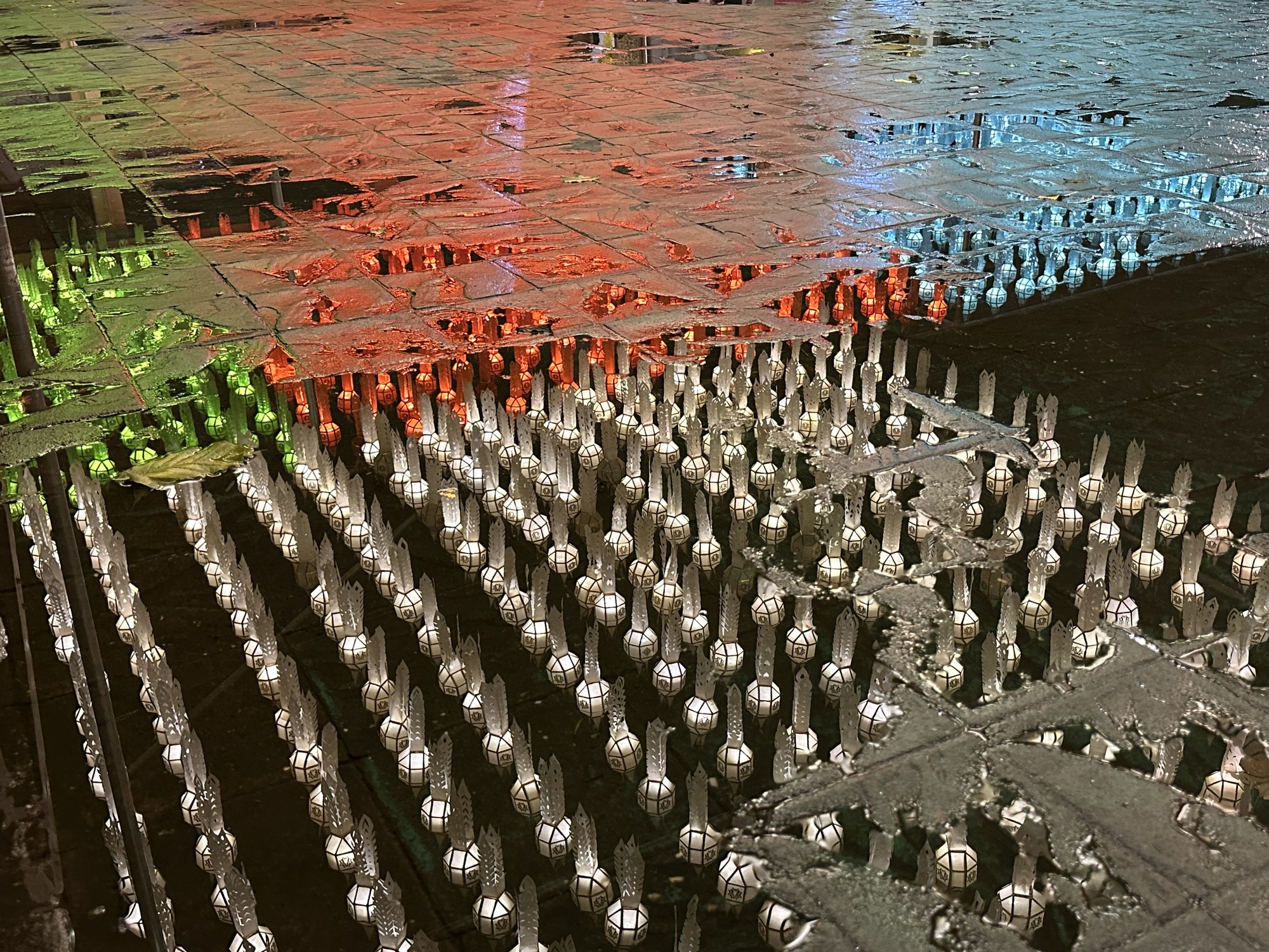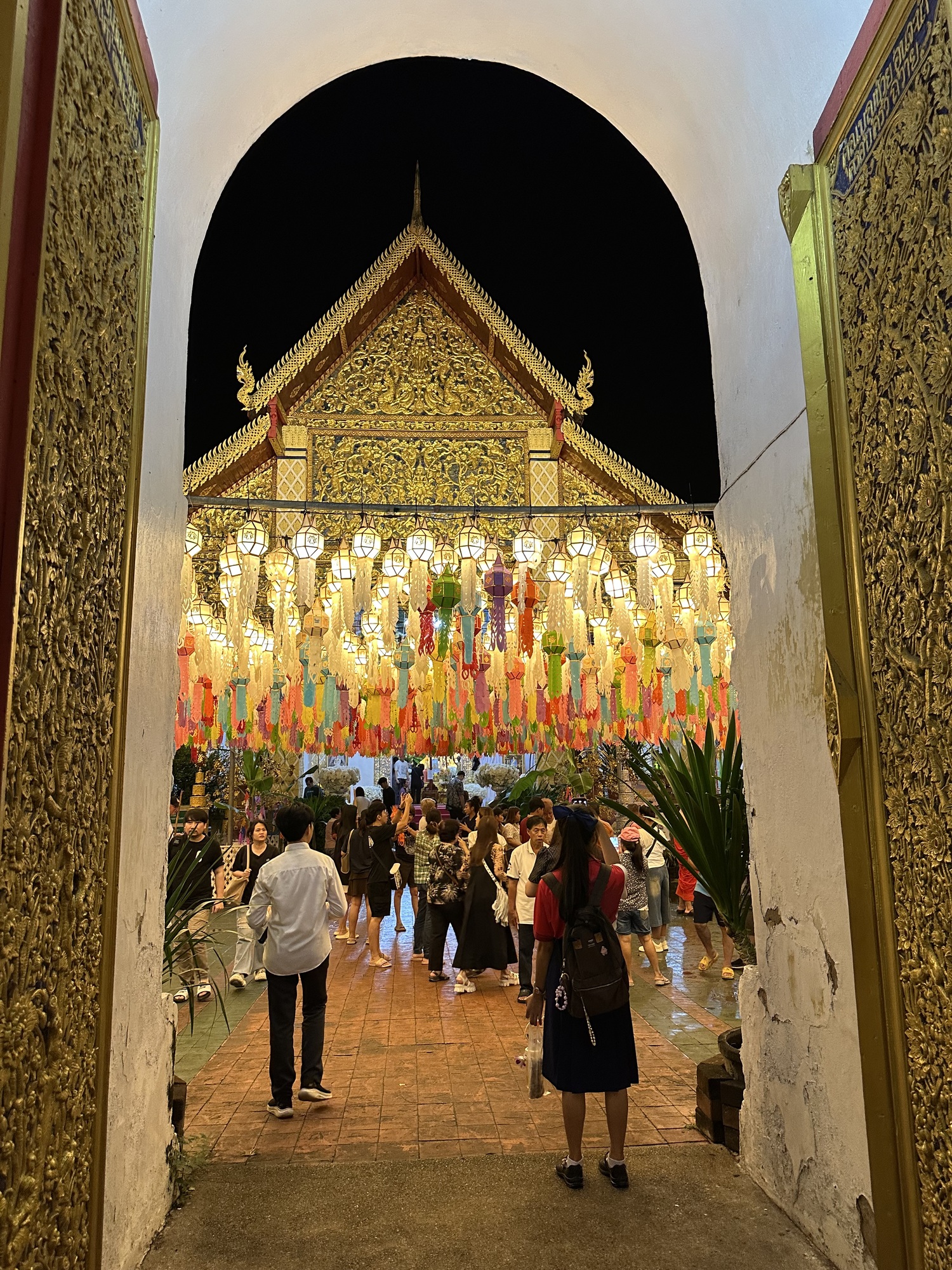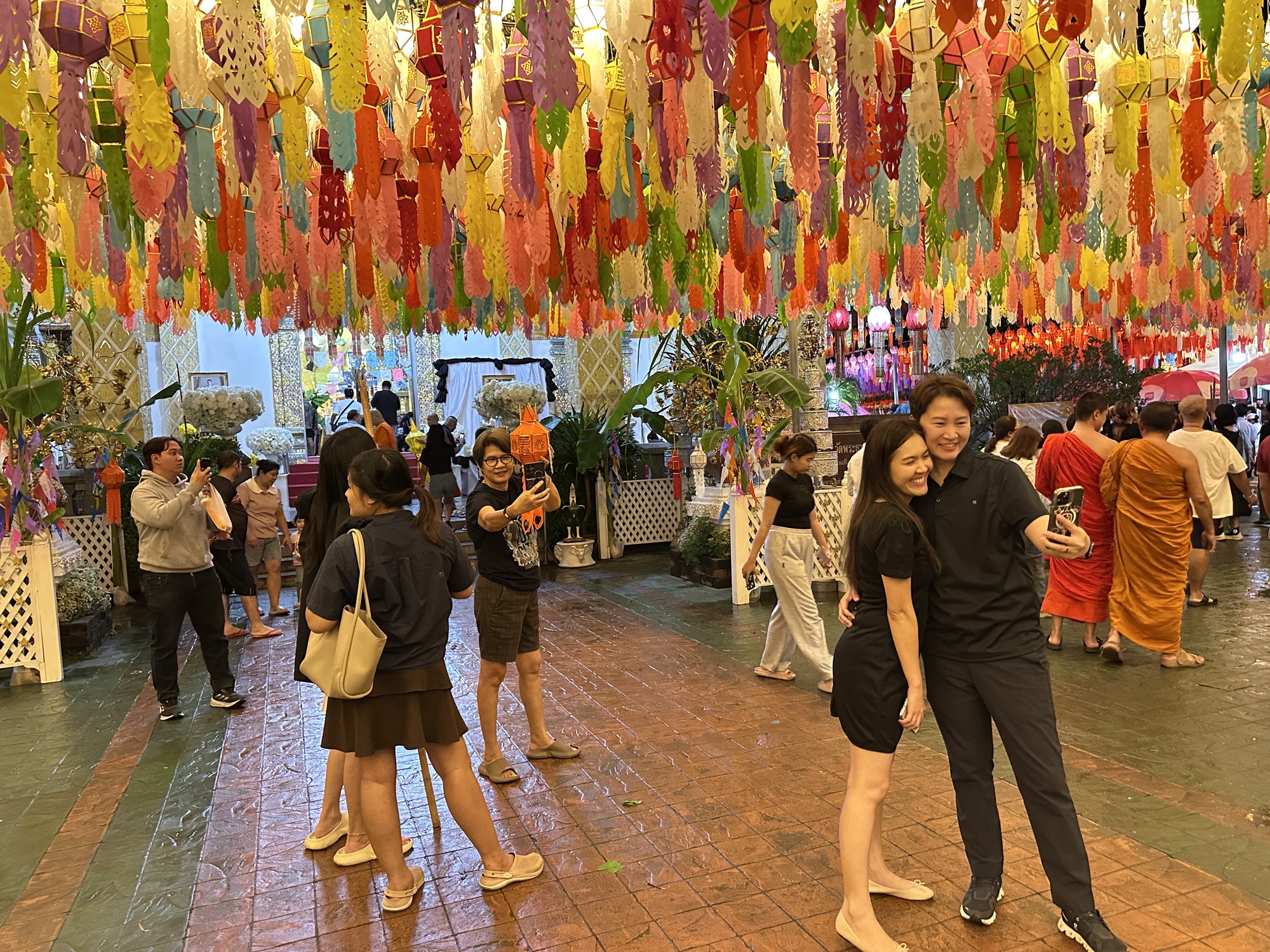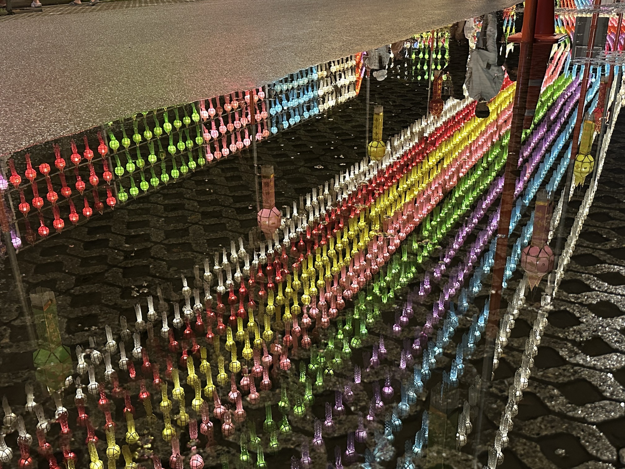 We arrived at our guesthouse mid-morning. It’s a lot nicer than the hotel we stayed at here three years ago. The owner speaks perfect English and went to school in Wisconsin and Rhode Island. We like Lamphun and rolled into town to our favorite coffee shop and sat at a wooden bar that faces the river. The town is all dolled up for its famous lantern festival. I’d read something about lanterns in Lamphun, but wasn’t prepared for the spectacle, it’s jaw-dropping. I don’t even know how to describe it so we’re going to have to just use photos.