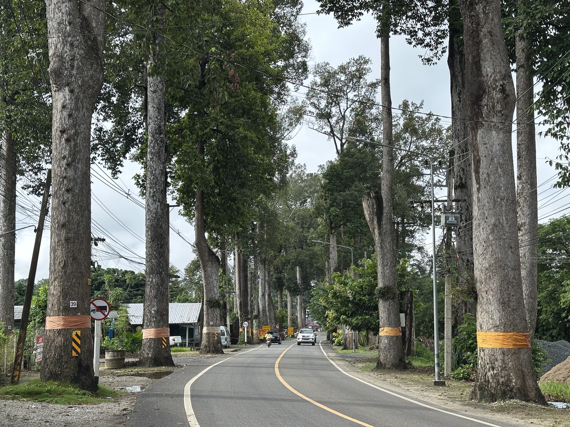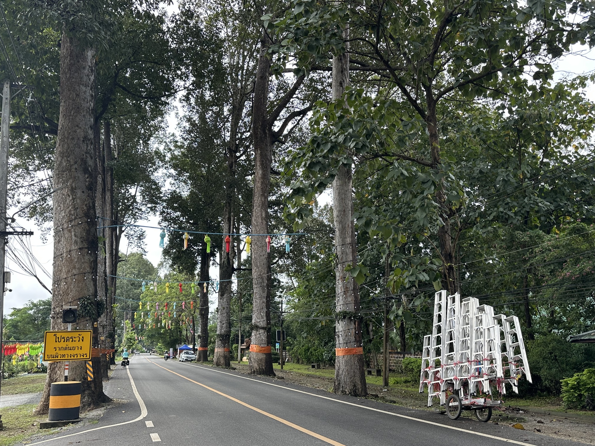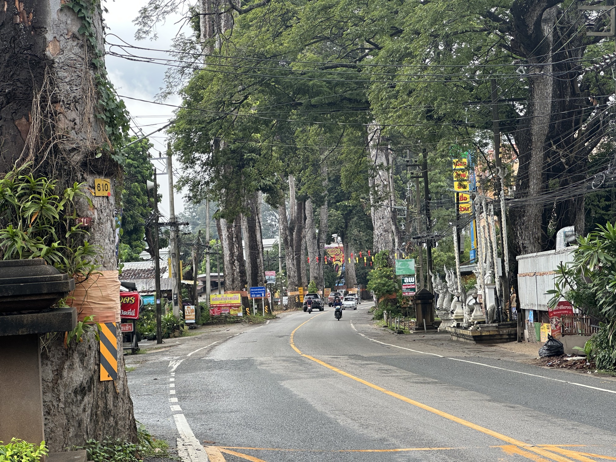 But you know what? The instant we joined into the traffic bloodstream I felt calm, confident, ready. These conditions are very familiar to us and any nerves I’d had a few minutes before launch evaporated. It wasn’t raining hard. It wasn’t hot. We turned onto 106 and immediately the tall straight dipterocarpus trees that line that road for a good 15 miles appeared. We wouldn’t dream of taking any other route between Chiang Mai and Lamphun.