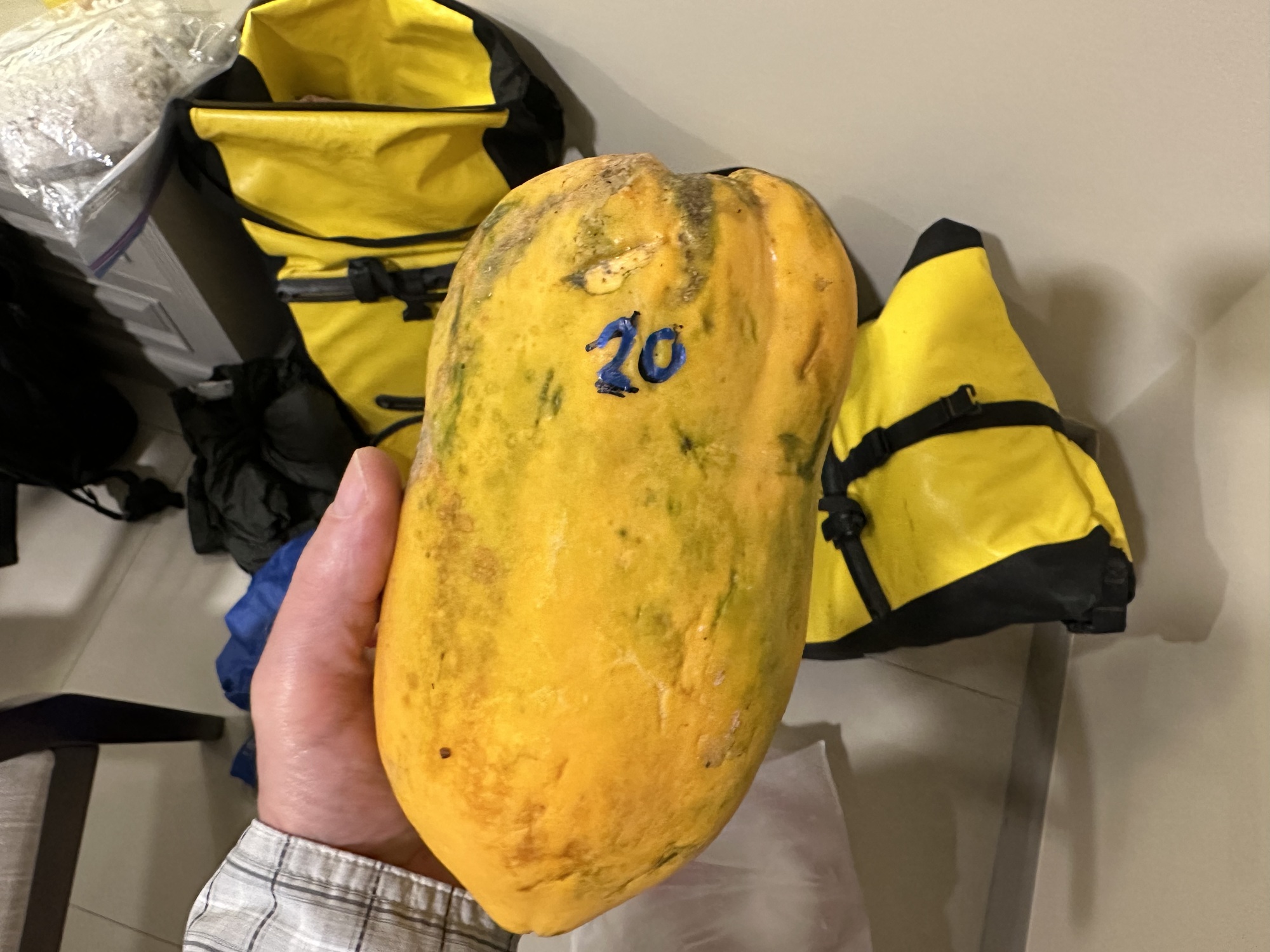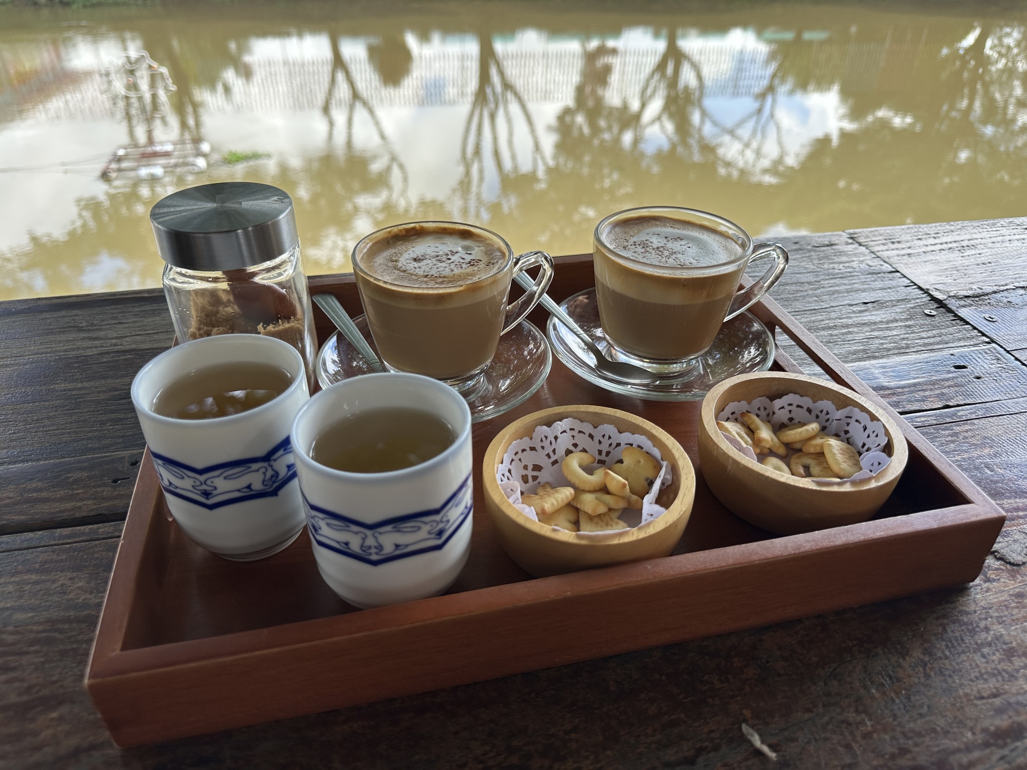 But by the time we had eaten our lovely papaya breakfast and moved our stuff downstairs and donned our rain gear (mine was for an adult this time, fresh from Chiang Mai Plastics) it was actually sort of slowing down.